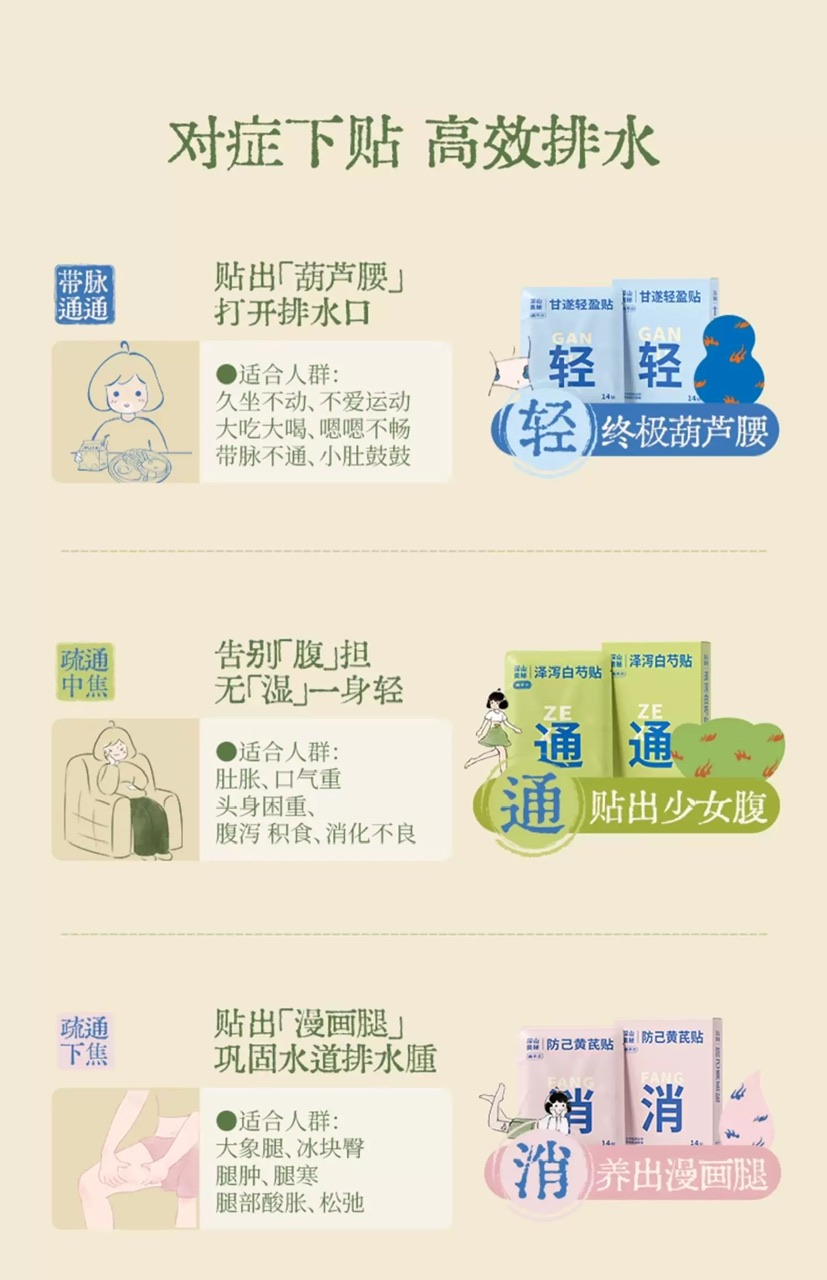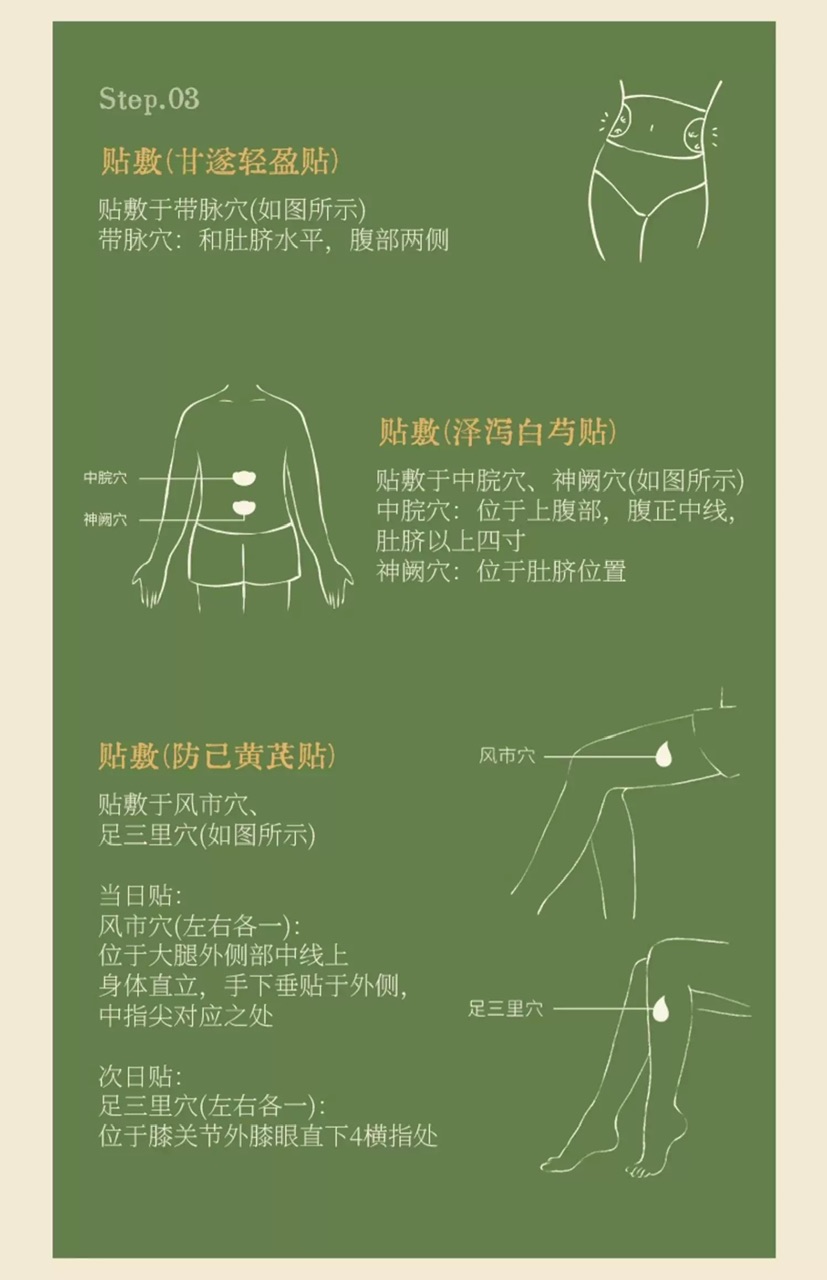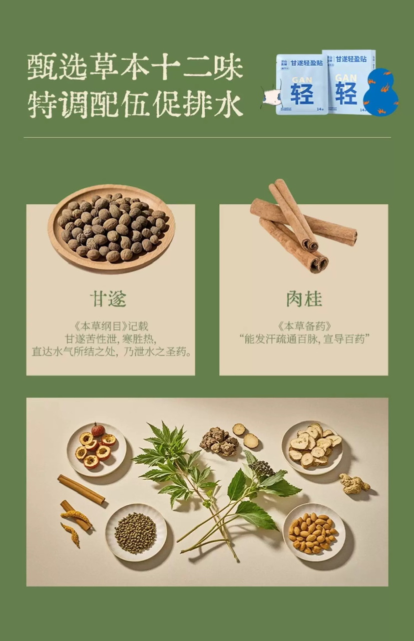 1️⃣轻•甘遂轻盈贴,帮助我们健脾祛湿瘦腰腹,拜拜游泳圈。