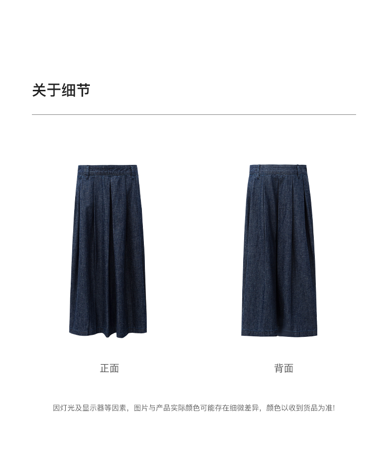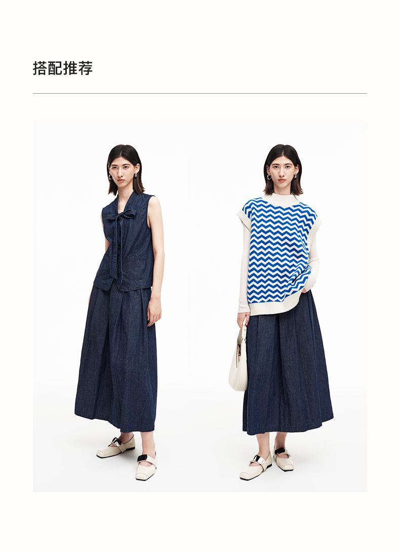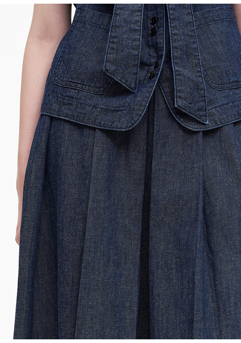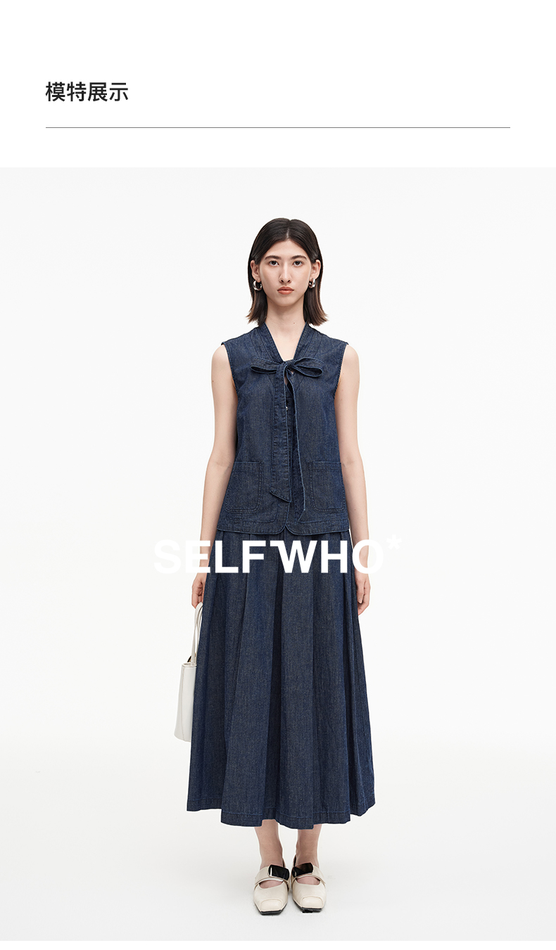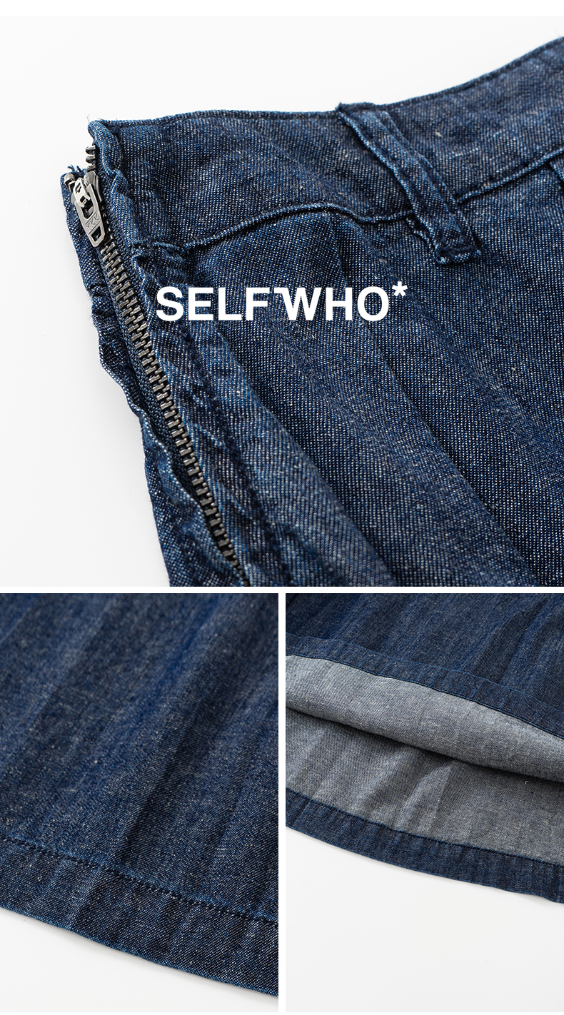 SELFWHO棉麻混纺原牛风牛仔半身裙女2025秋新款立体工字褶A字长裙