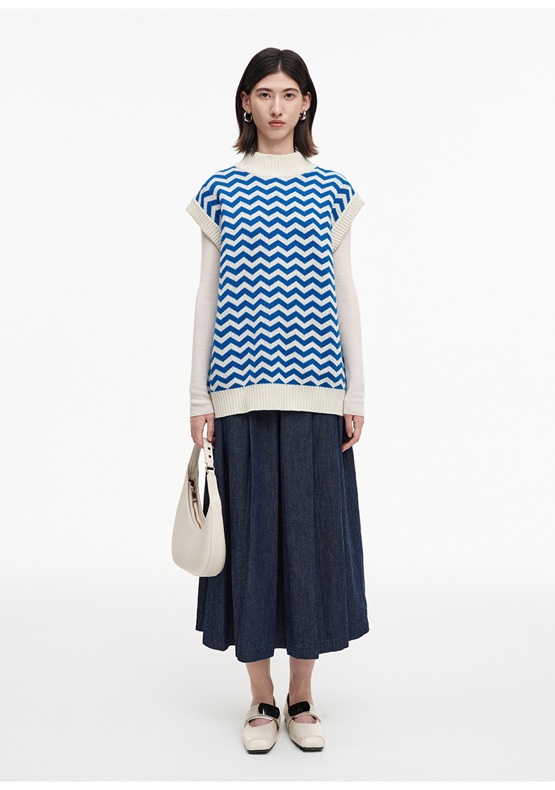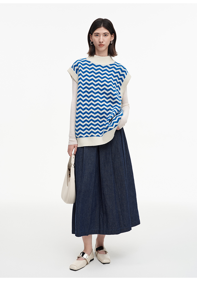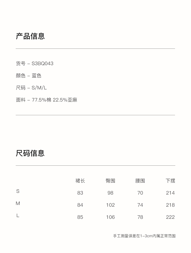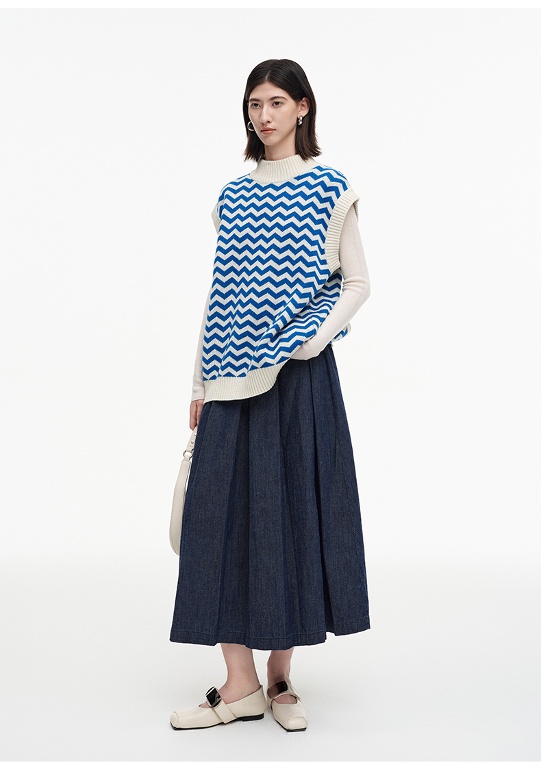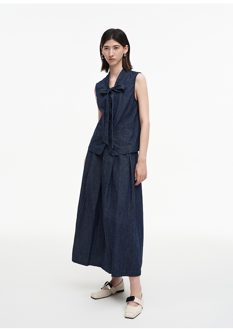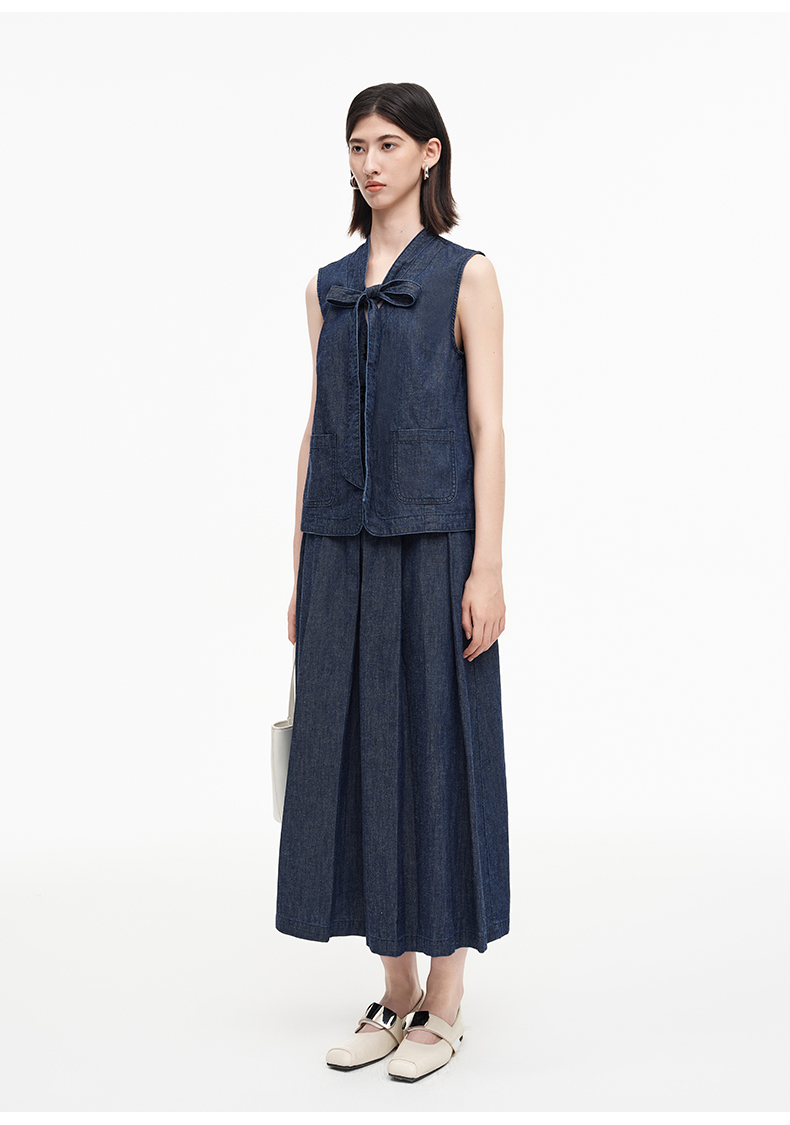 SELFWHO棉麻混纺原牛风牛仔半身裙女2025秋新款立体工字褶A字长裙