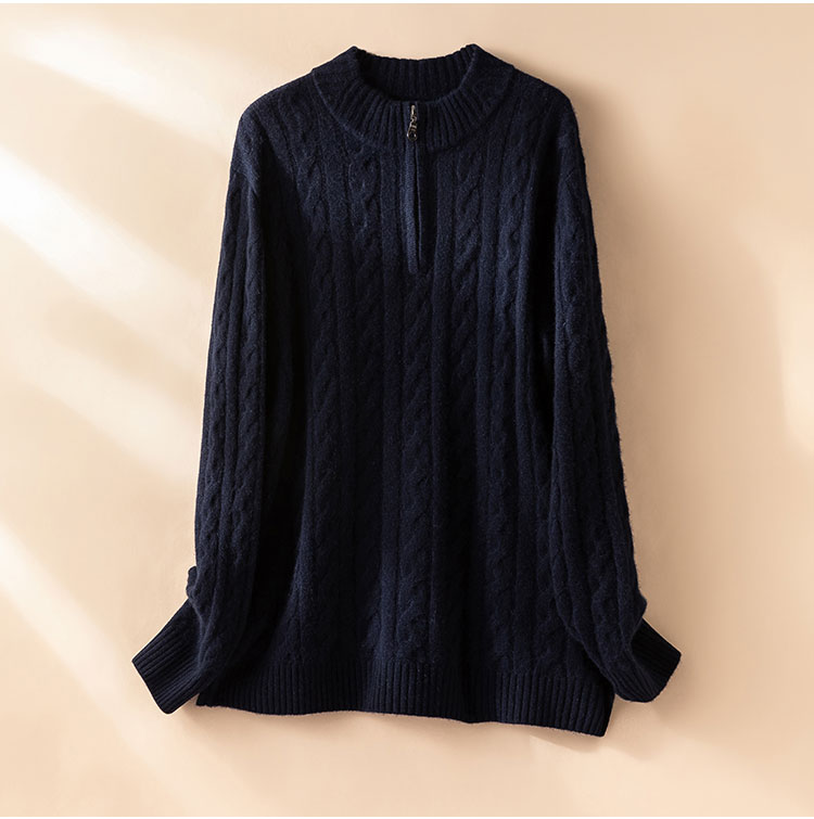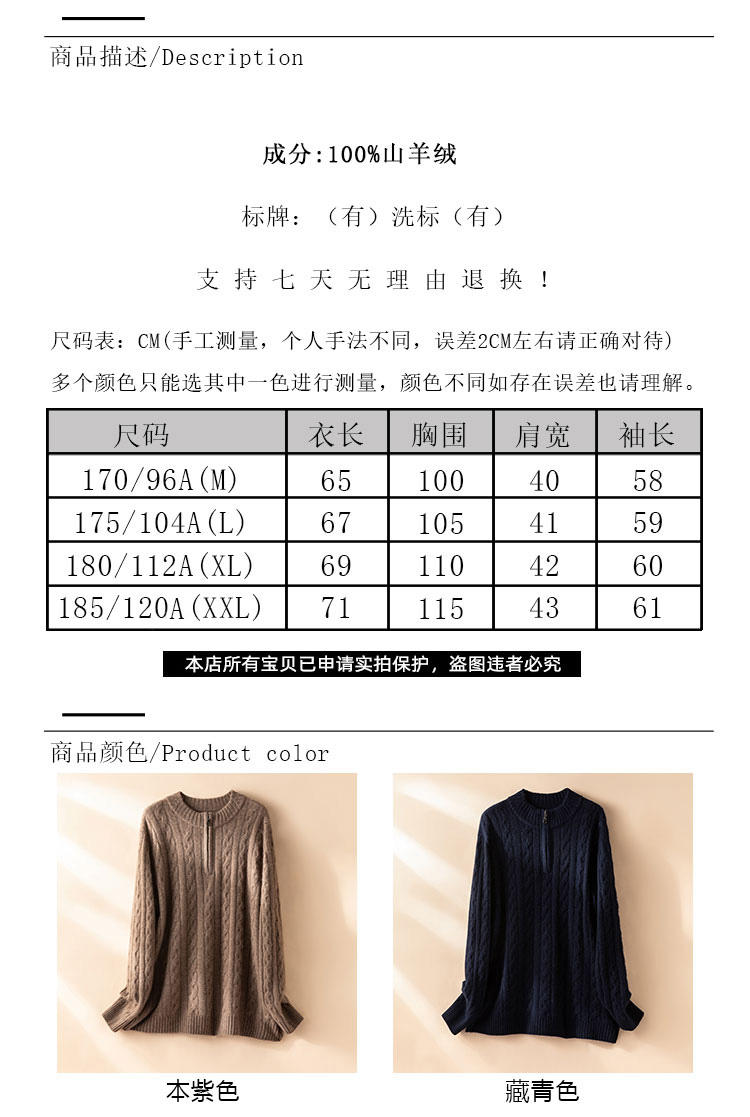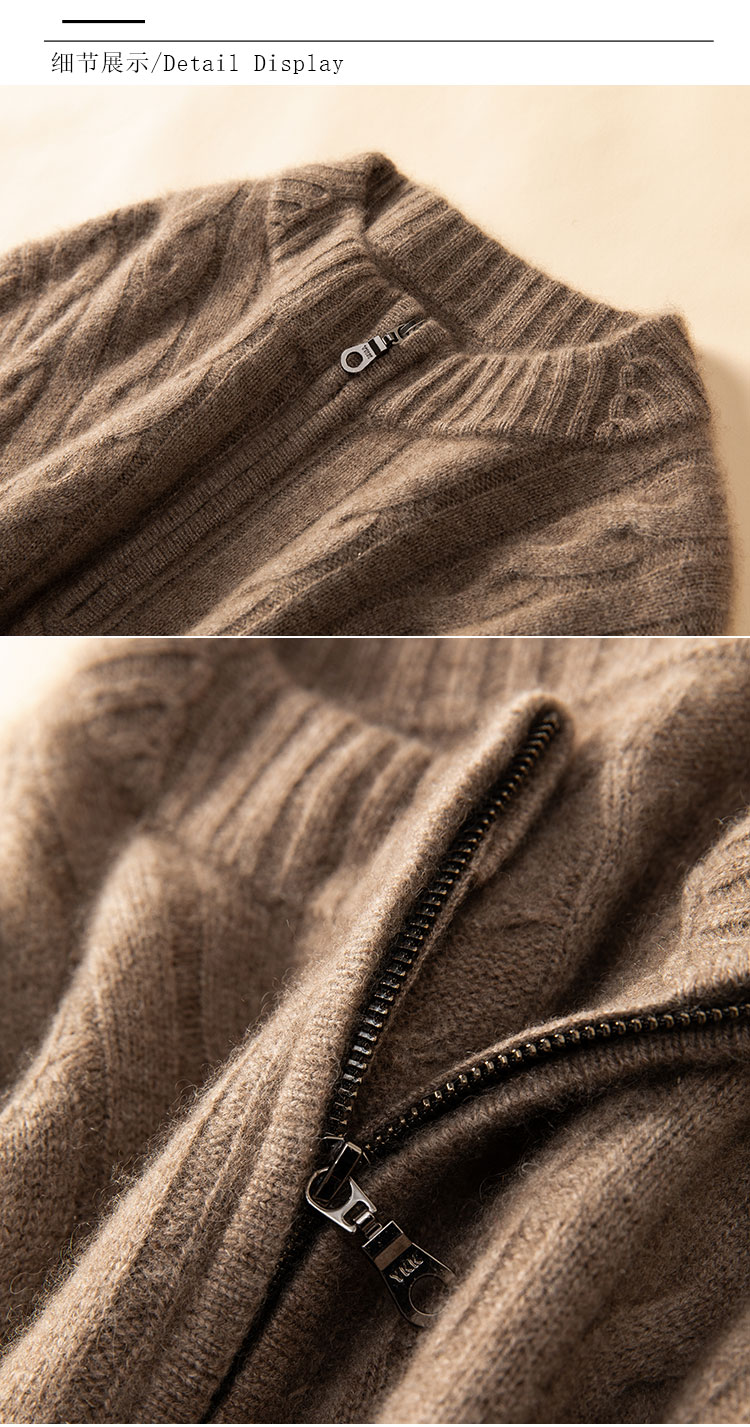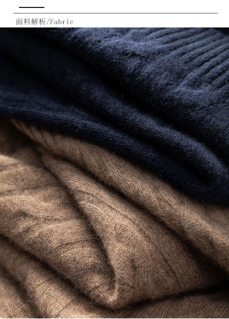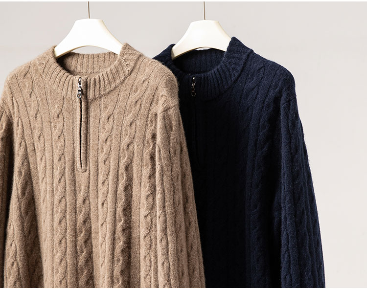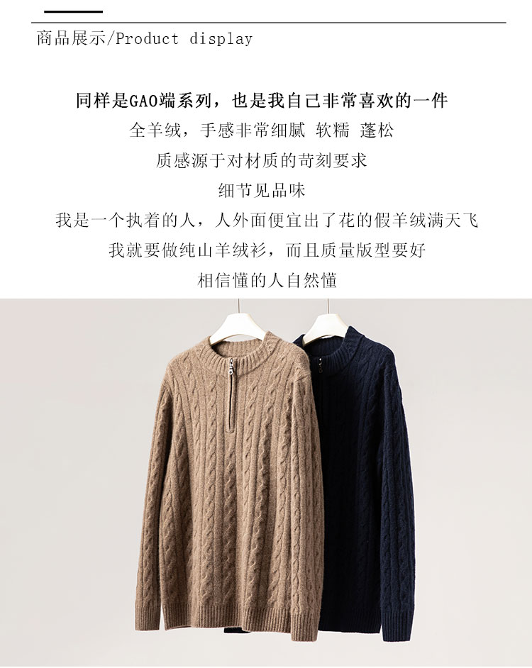 LP大克重~100纯山羊绒衫男半高领绞花毛衣半拉链打底衫CYR25112
