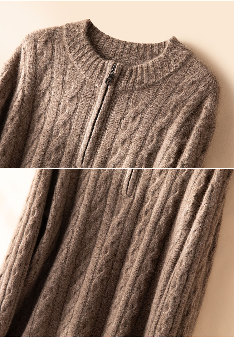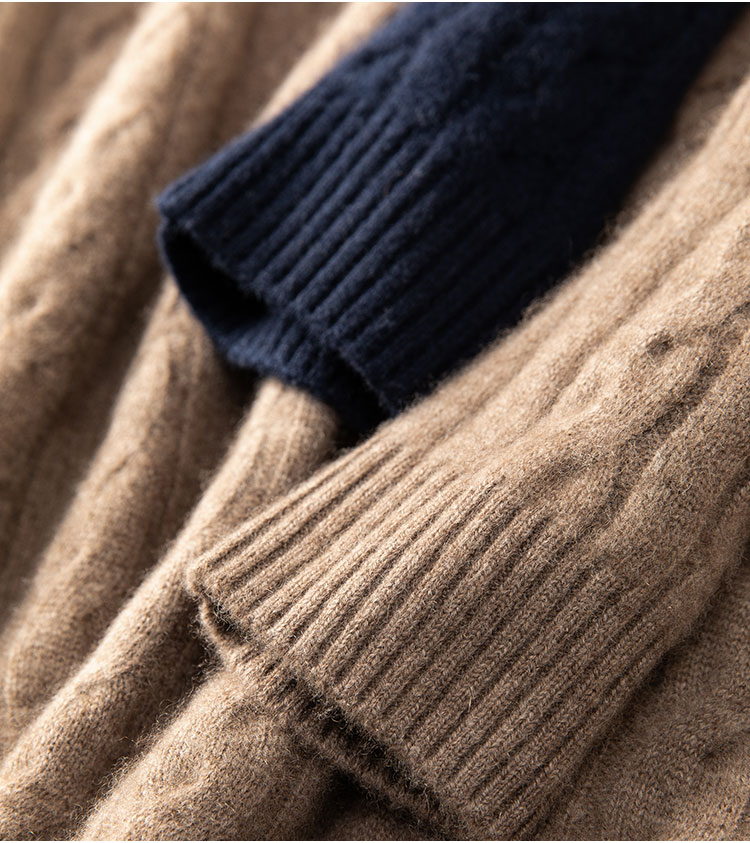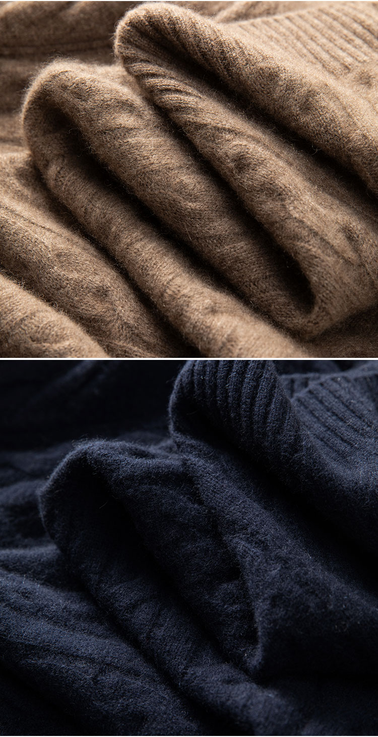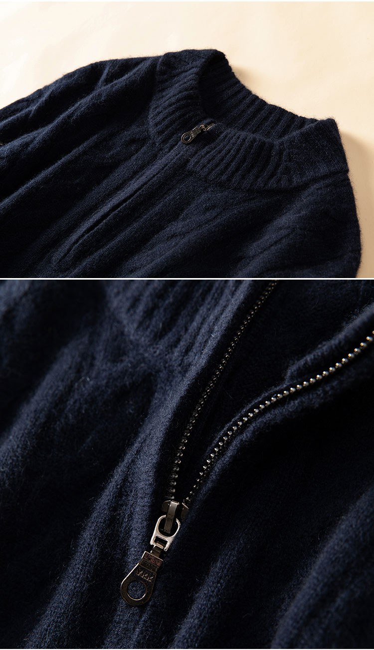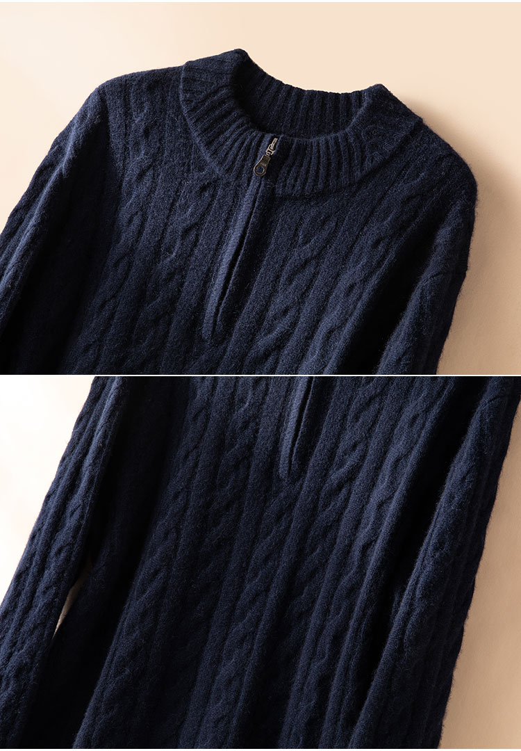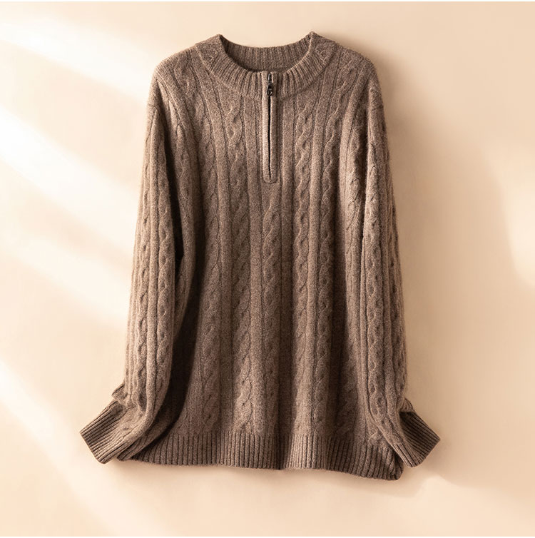 LP大克重~100纯山羊绒衫男半高领绞花毛衣半拉链打底衫CYR25112