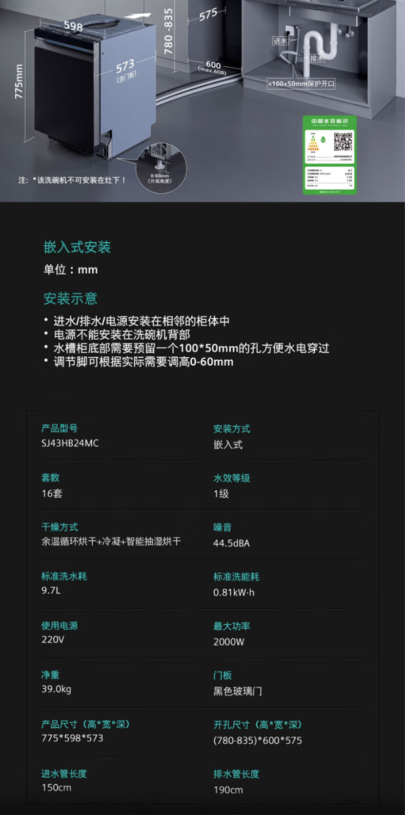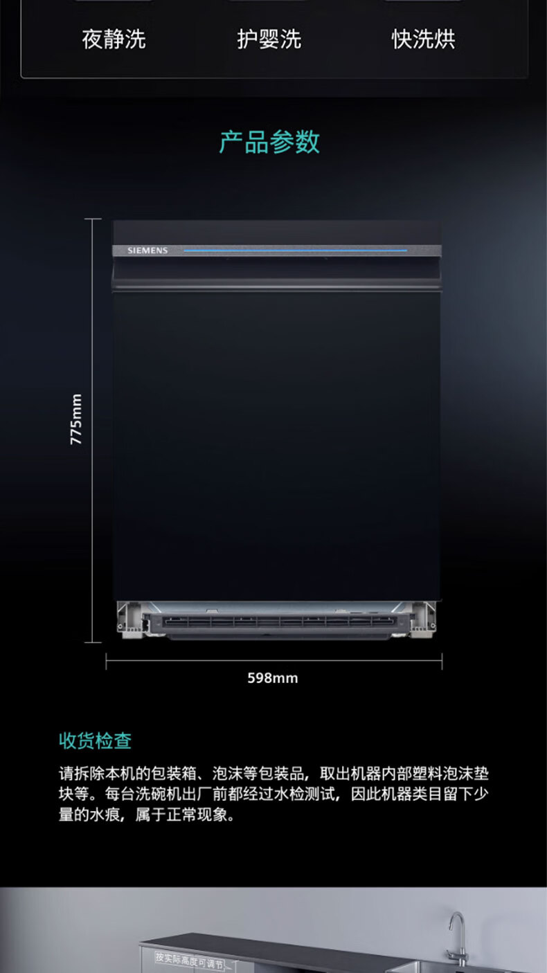 【4月西门子洗碗机】SJ43HB24MC洗碗机SIEMENS嵌入式家用蒸汽消毒除菌极致16套家/商用 西门子SJ43HB24MC智感油污