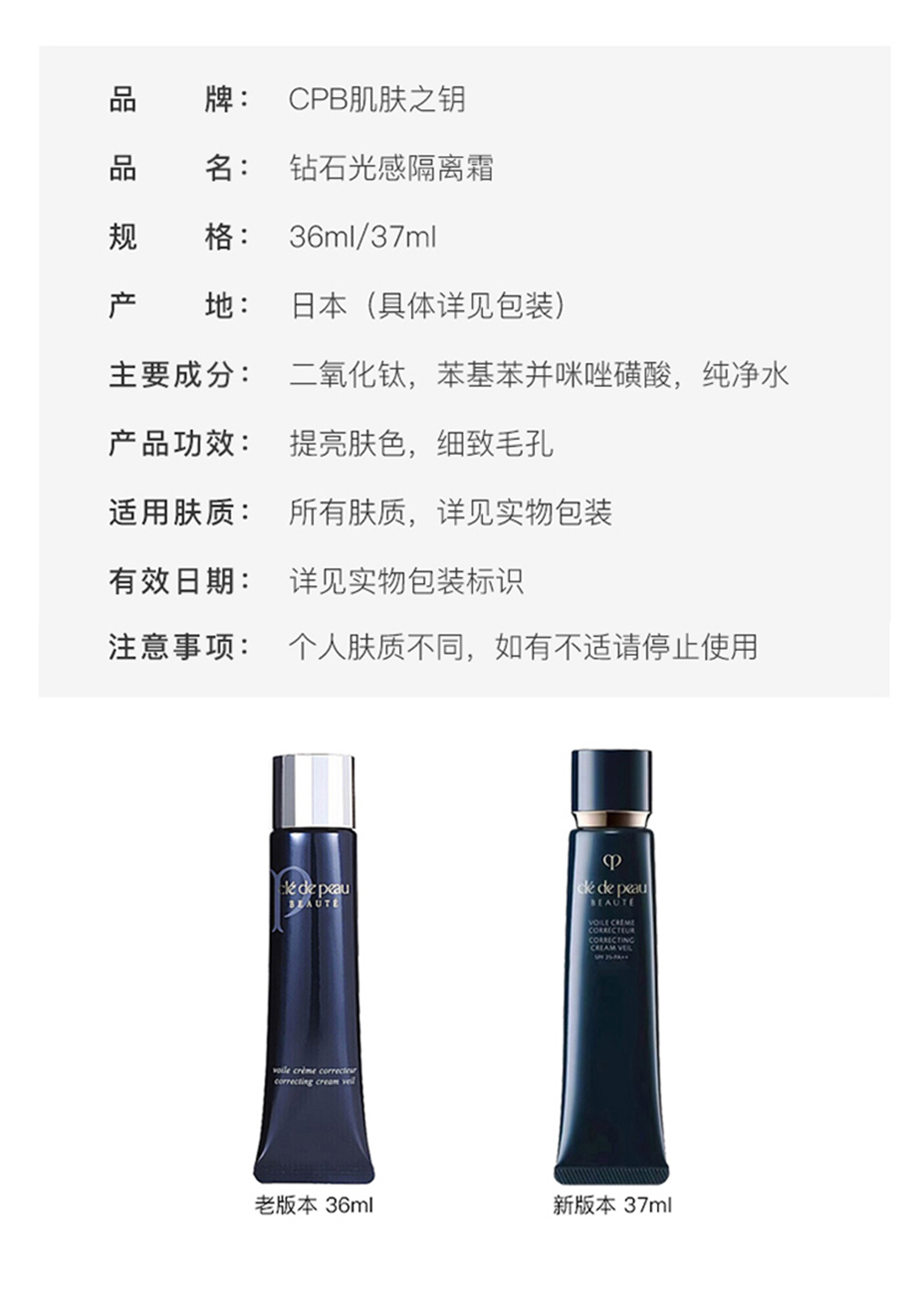 【礼想心动】CPB 肌肤之钥 长管隔离 国际版 37ml