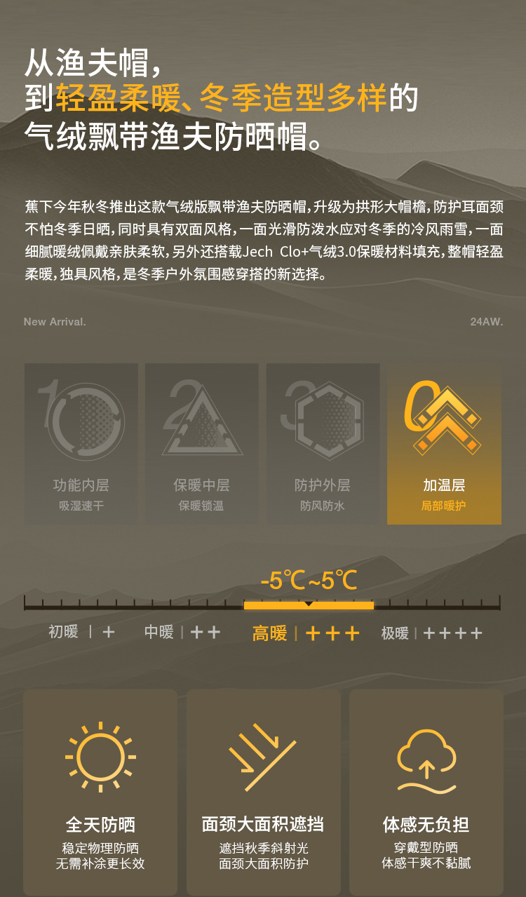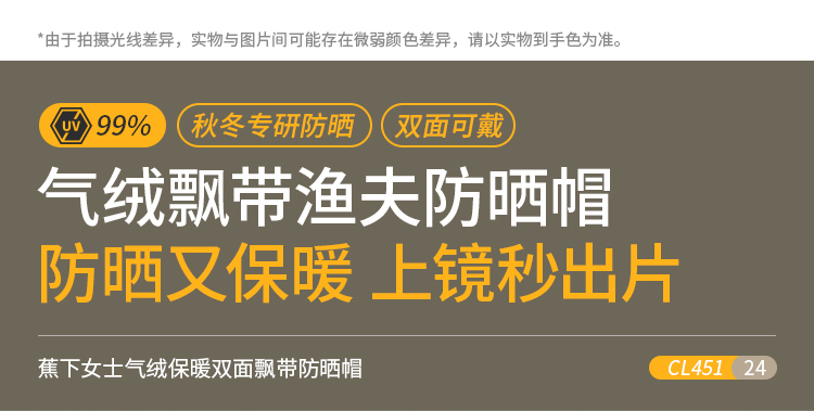 蕉下 女士气绒保暖双面飘带防晒帽 CL45124