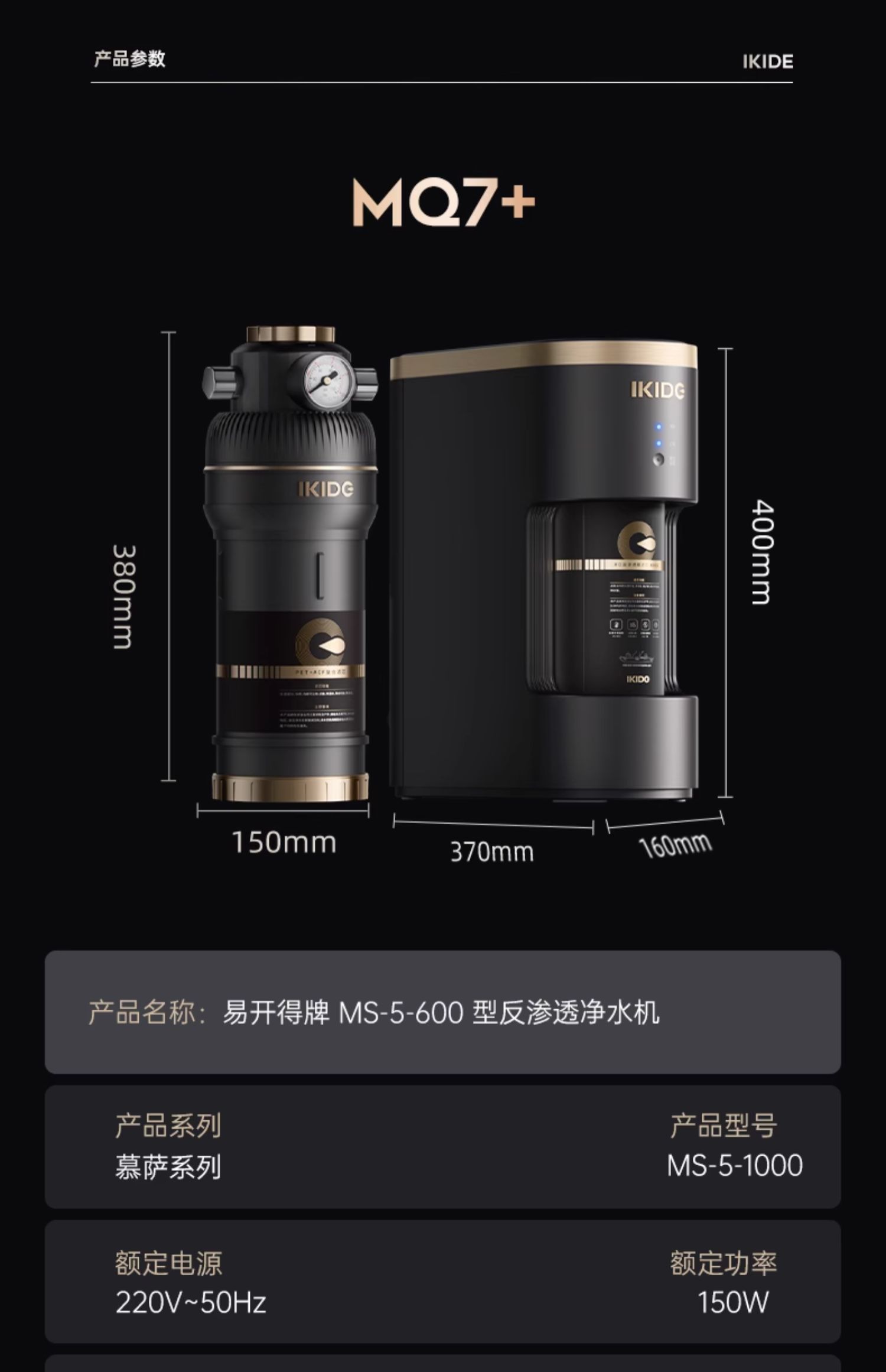 易开得MQ7+全厨房净水器家用直饮 1000G大通量RO反渗透自来水净纯水机