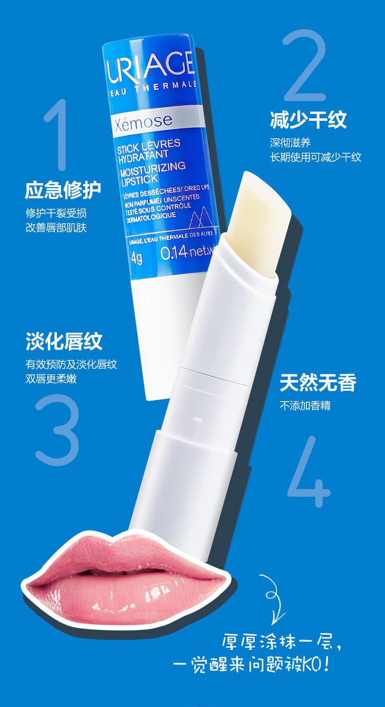 【保税仓】Uriage依泉舒幕特润唇膏2*4g