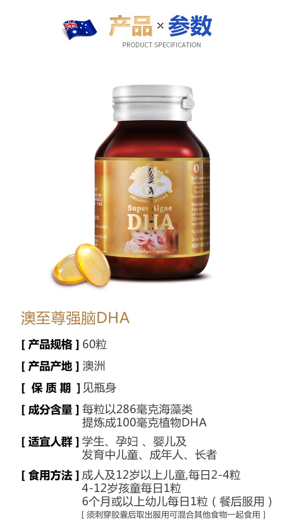 (香港直邮)澳至尊DHA婴幼儿儿童营养软胶囊60粒 保质期至2026-06-30