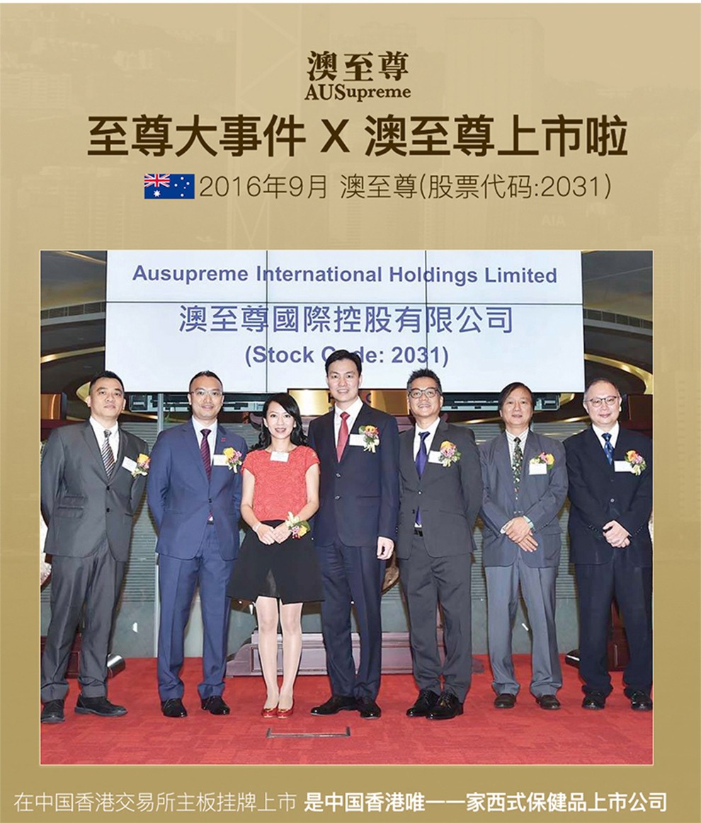 - 澳至尊集团是首间在香港交易所主板上市的专营澳洲营养保健食品的企业(HK.2031),经过创办人蔡志辉先生及何家敏女士20多年的用心经营,澳至尊品牌成为家喻户晓的优质保健食品品牌。