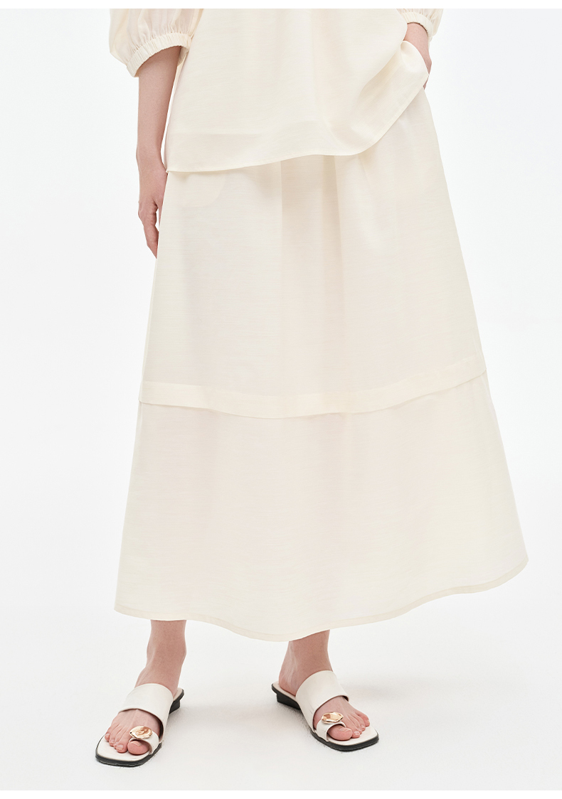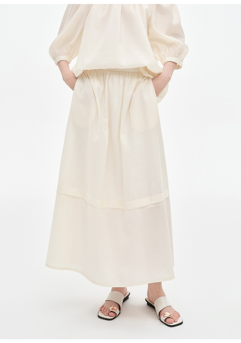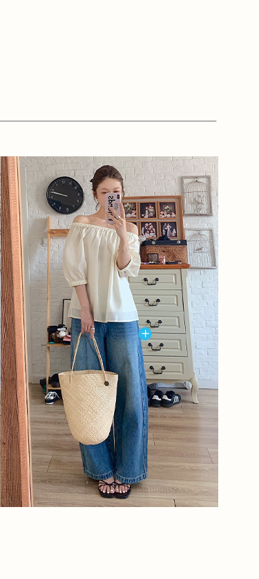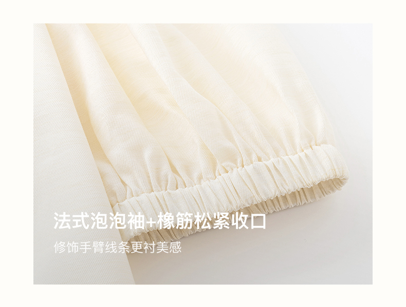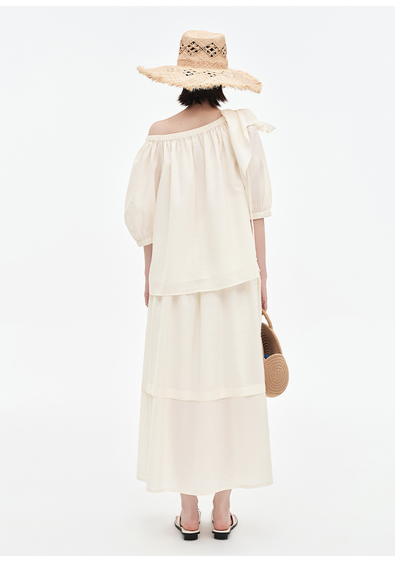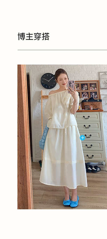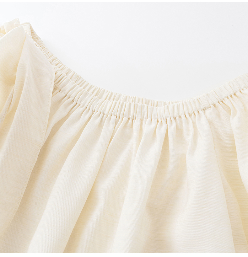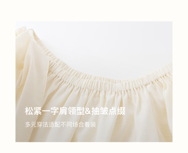 [姜妍同款]SELFWHO天丝羊毛混纺一字领套装衬衫女夏装泡泡袖上衣