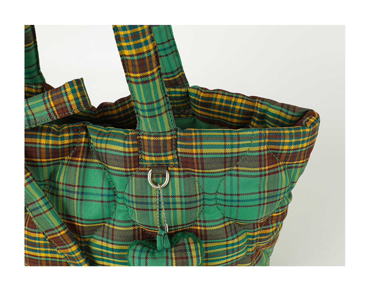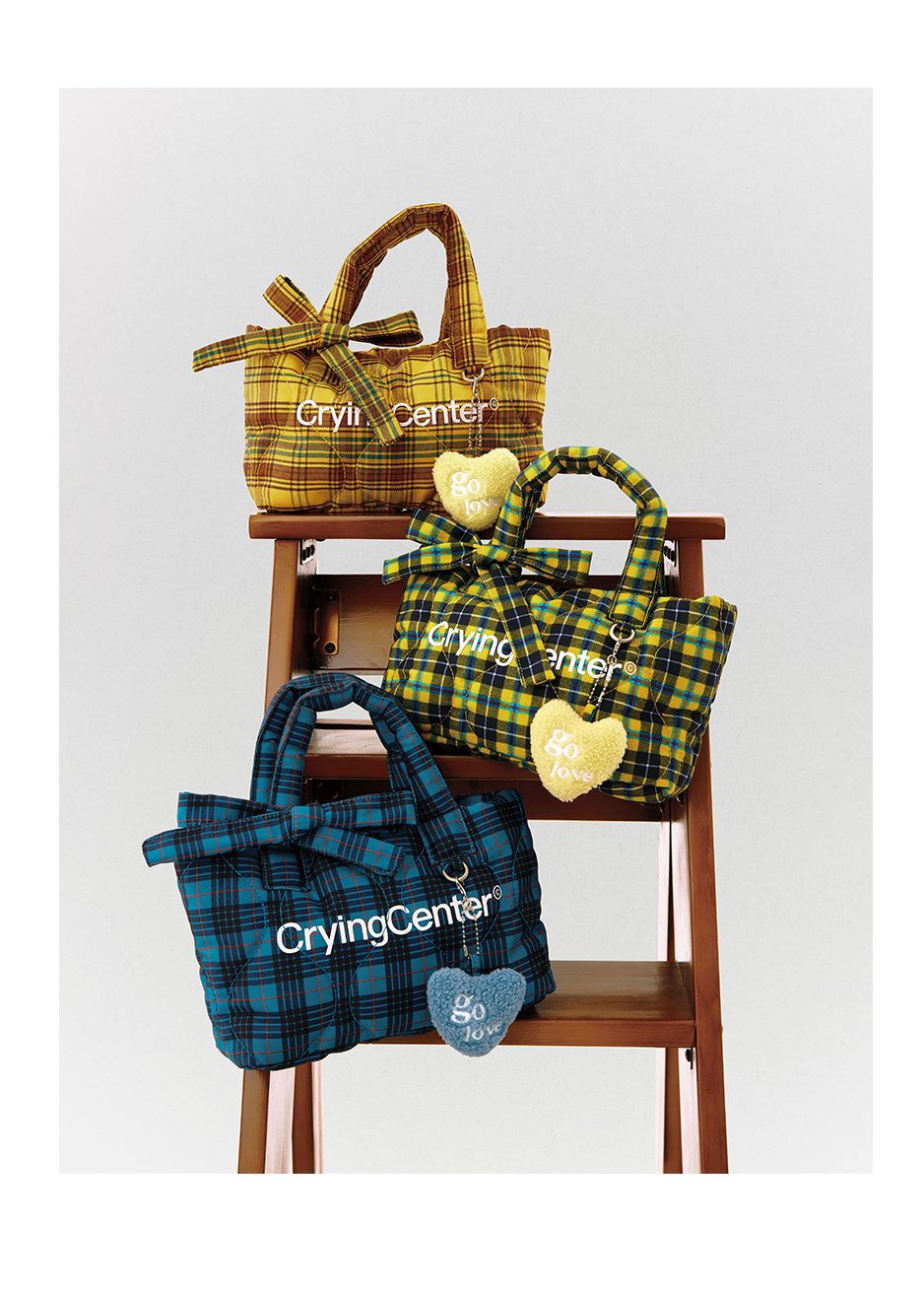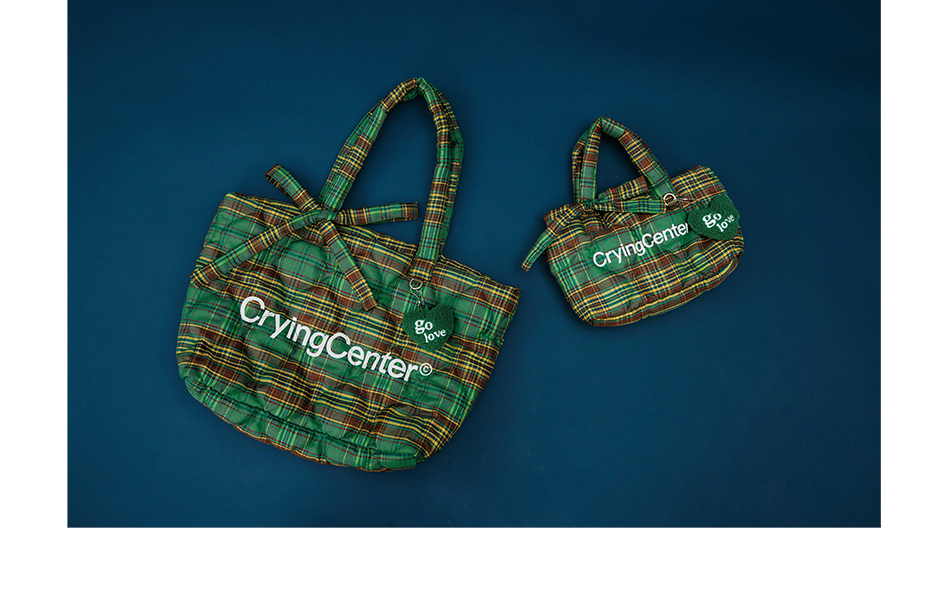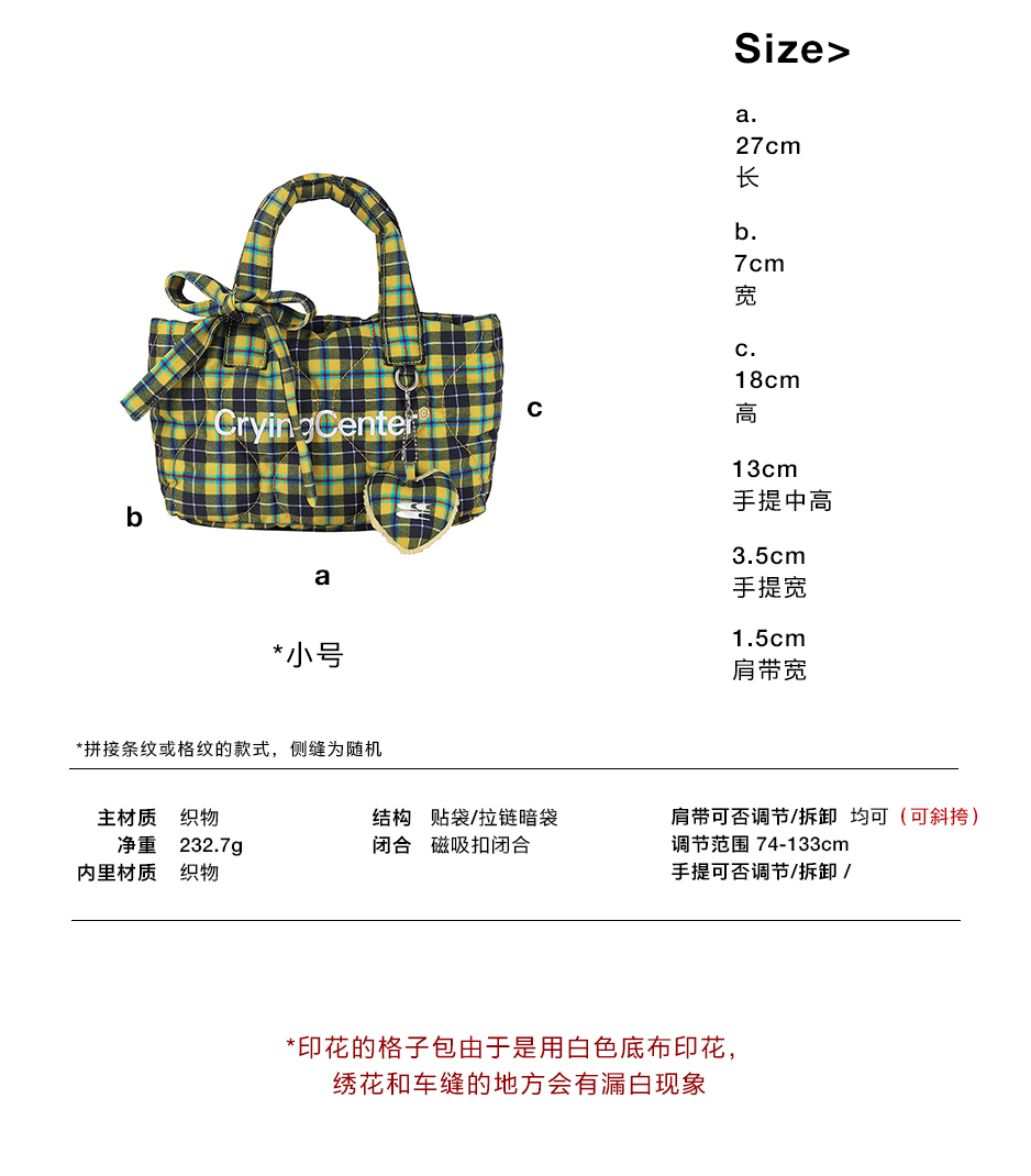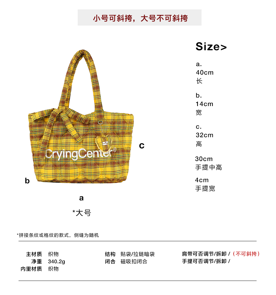 CryingCenter多色复古格纹托特包(含云朵挂件)斜挎单肩包大小号