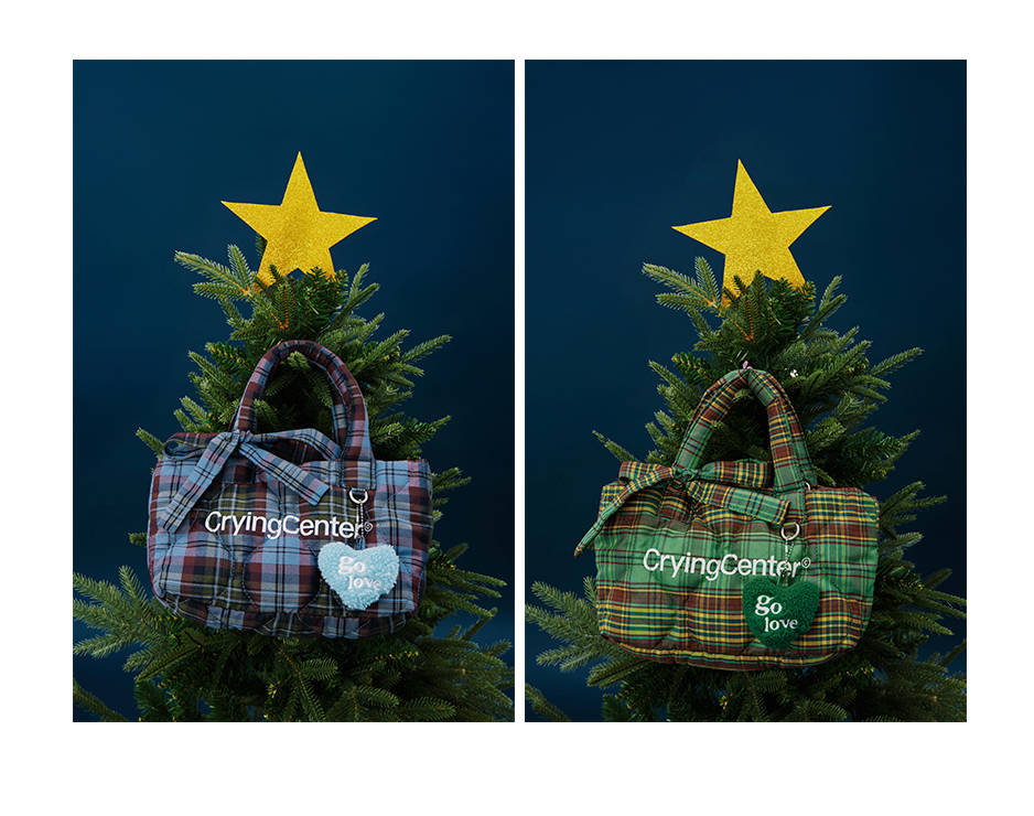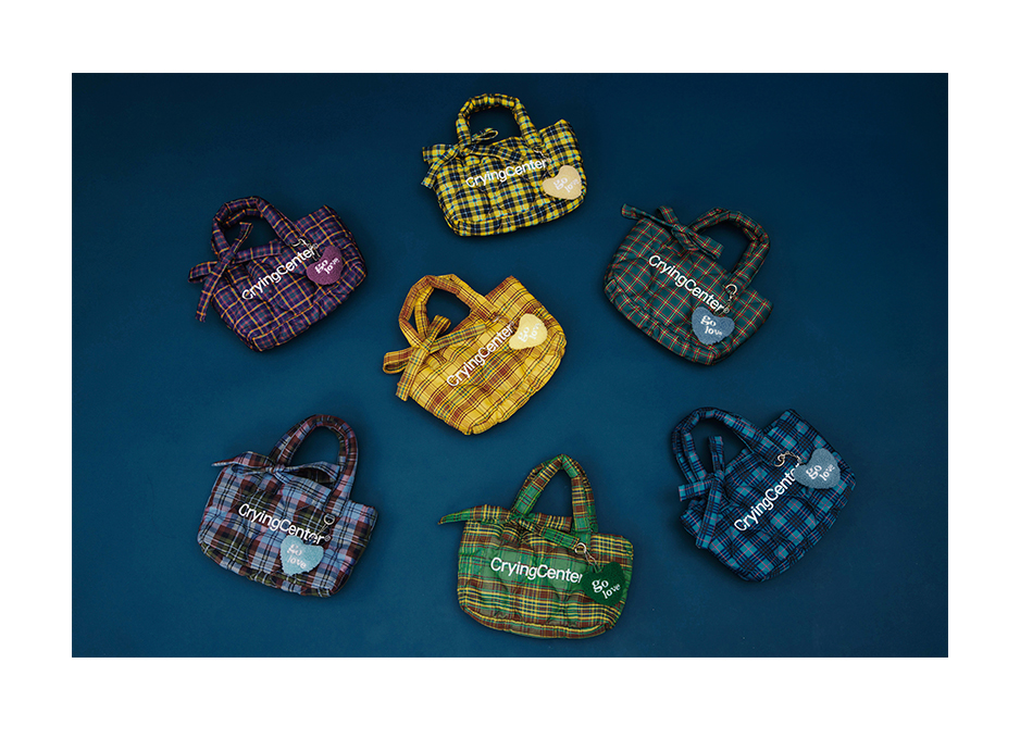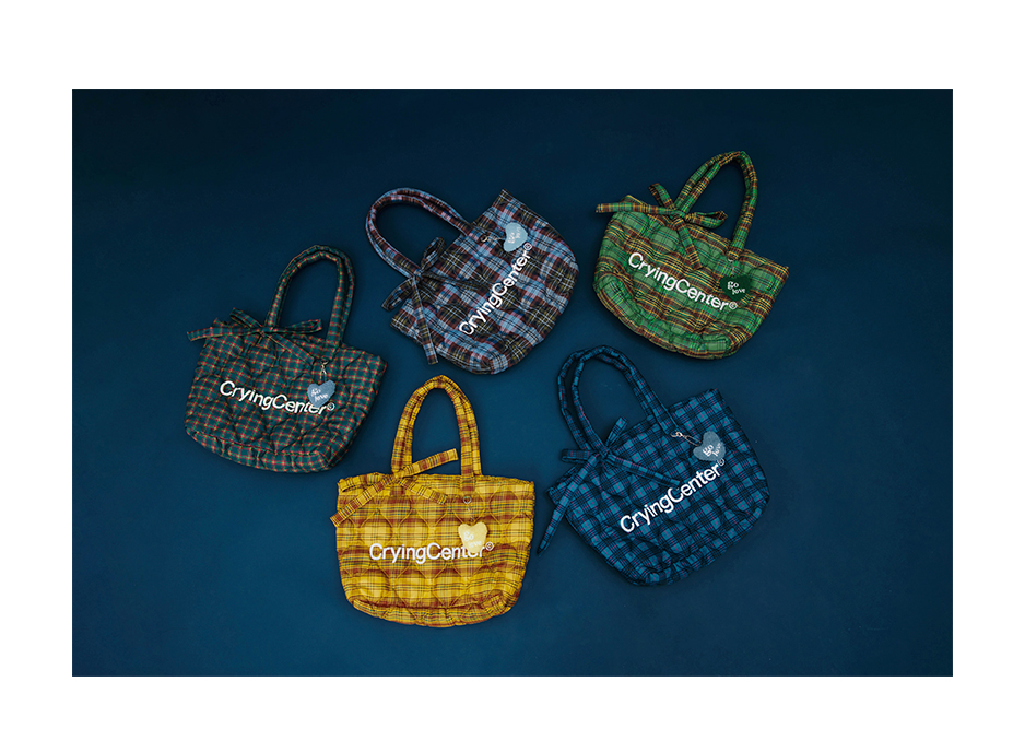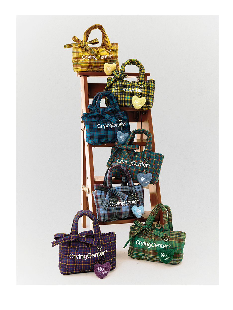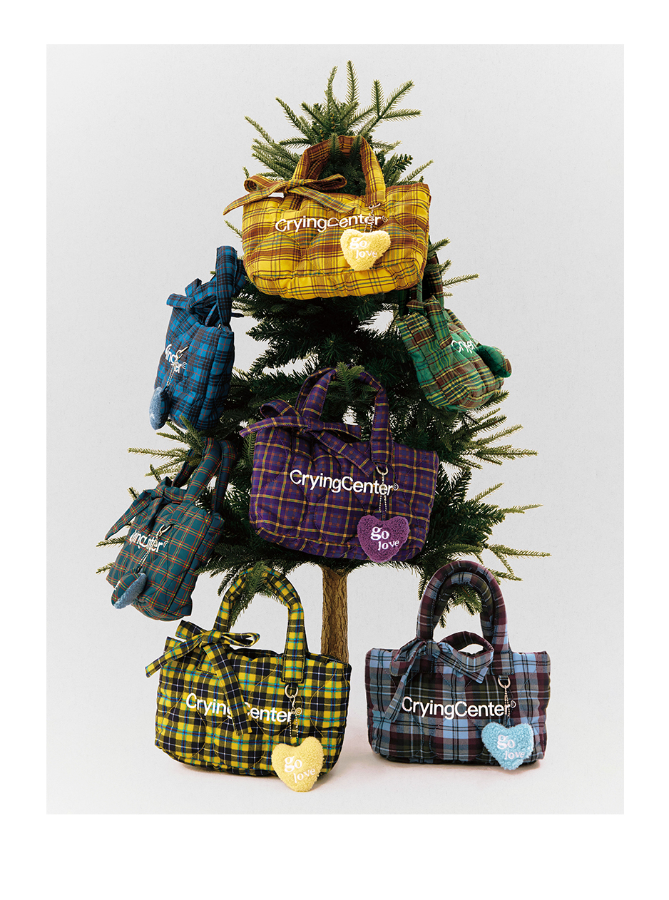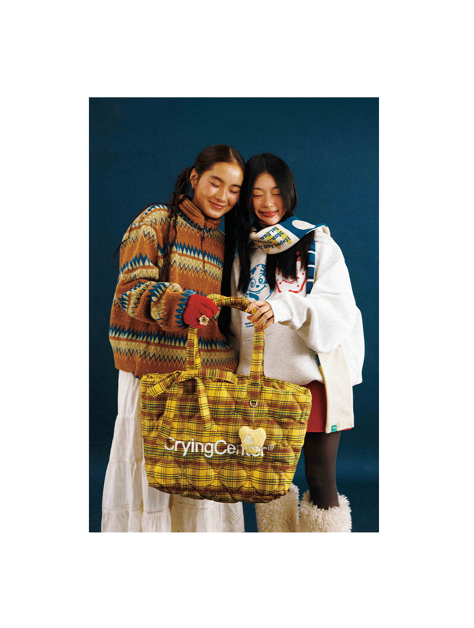 CryingCenter多色复古格纹托特包(含云朵挂件)斜挎单肩包大小号