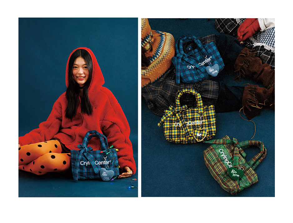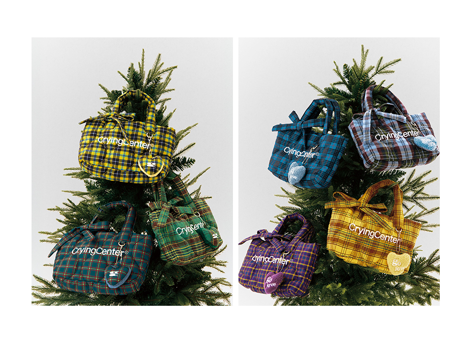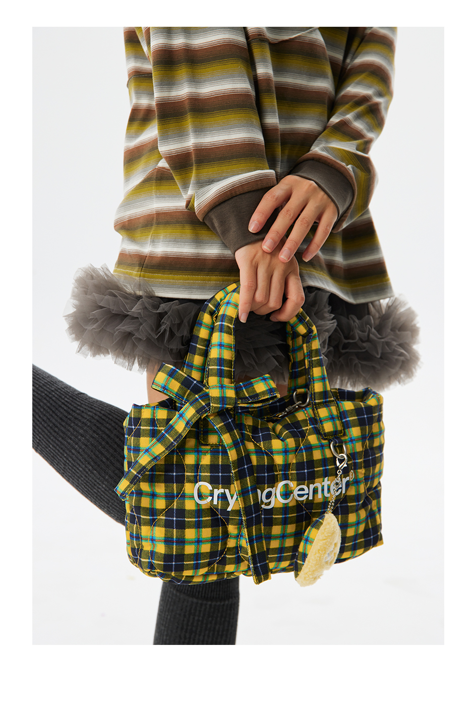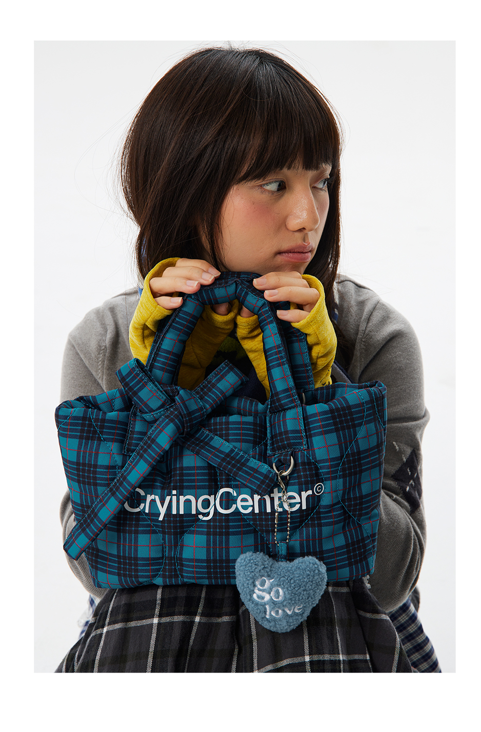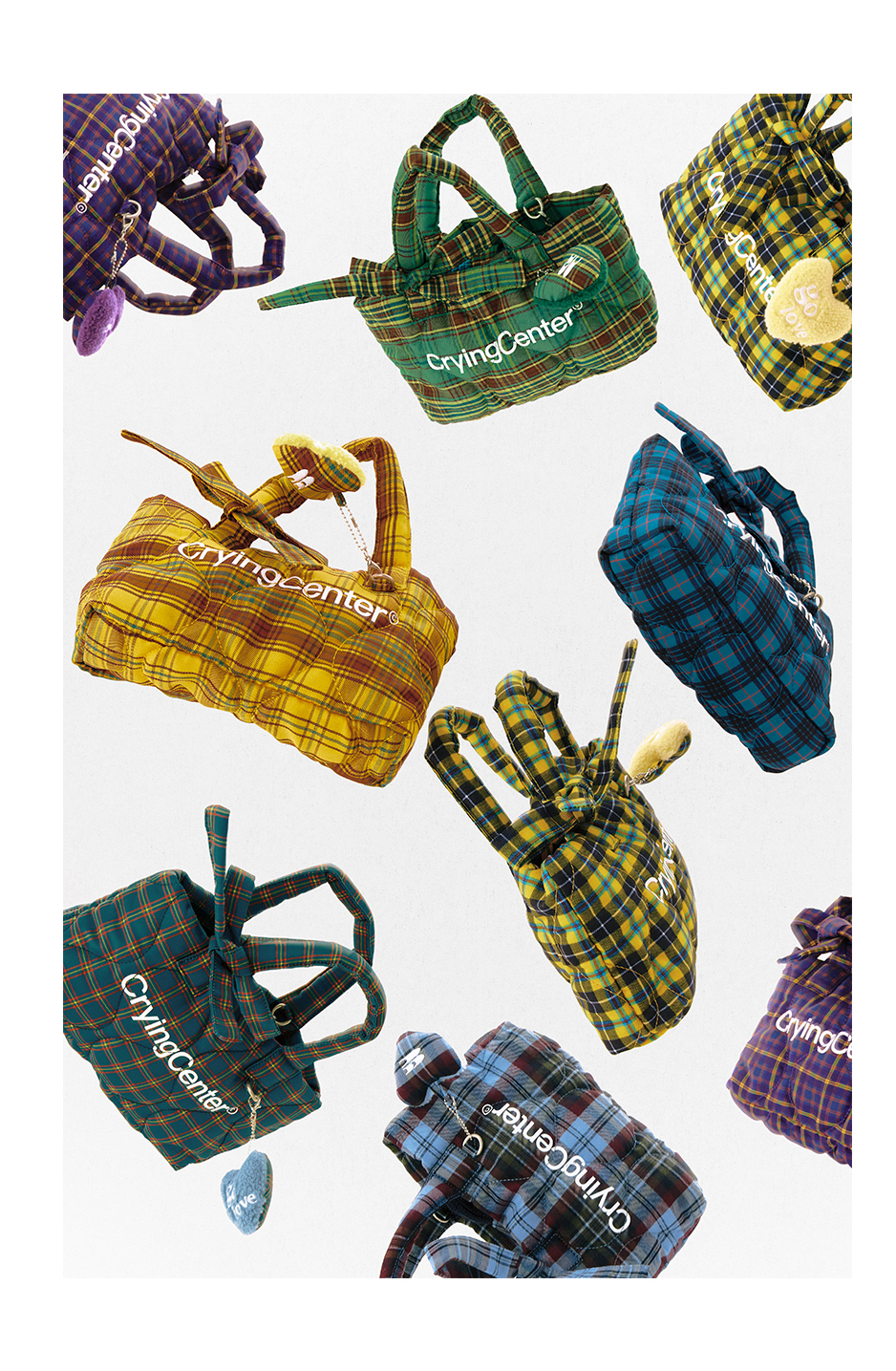 CryingCenter多色复古格纹托特包(含云朵挂件)斜挎单肩包大小号