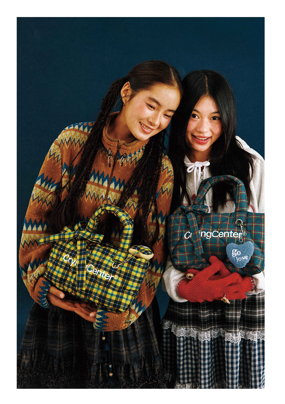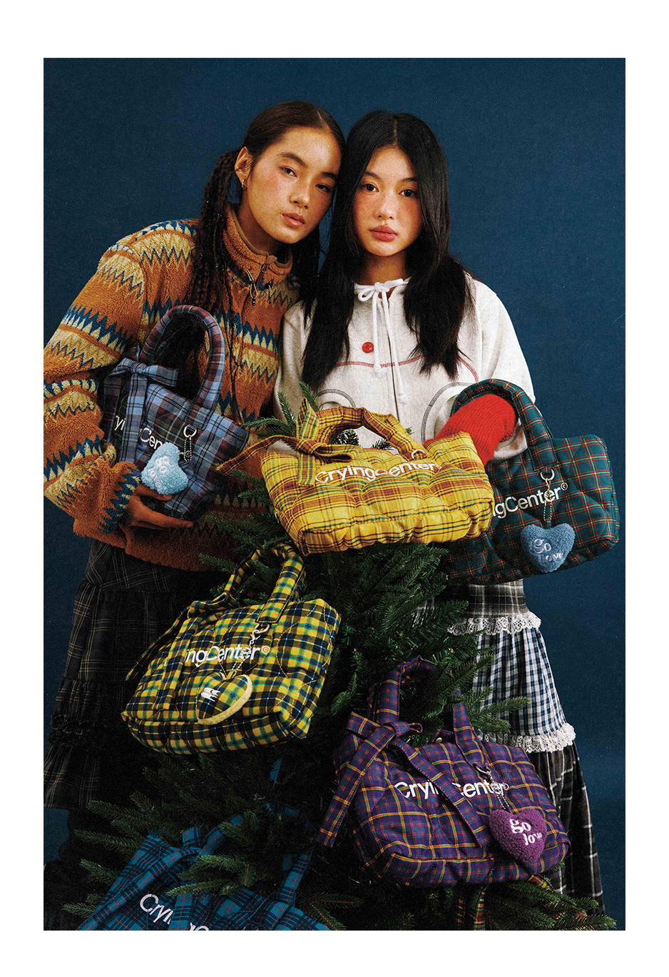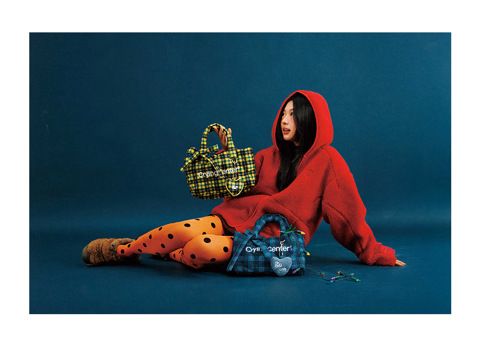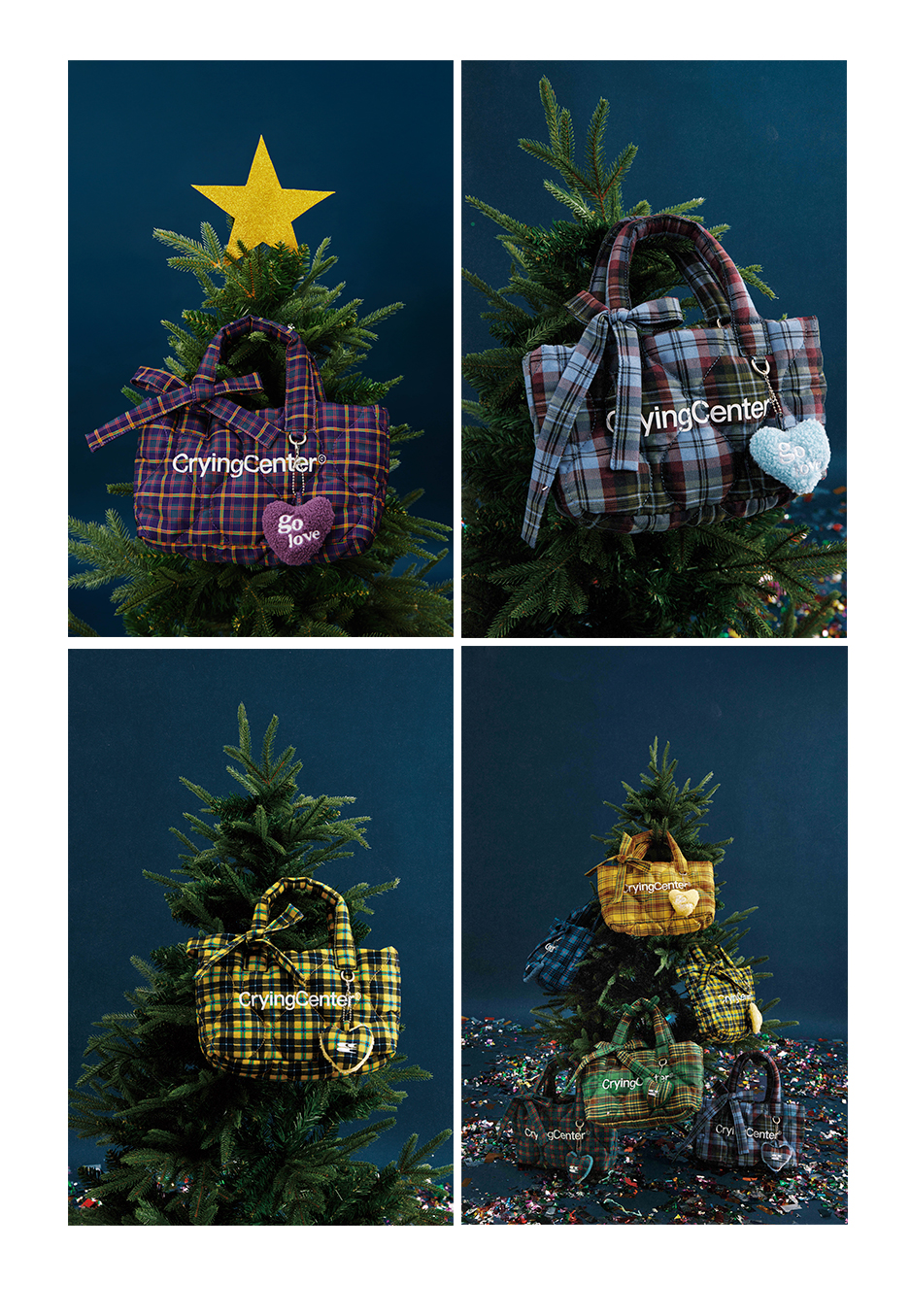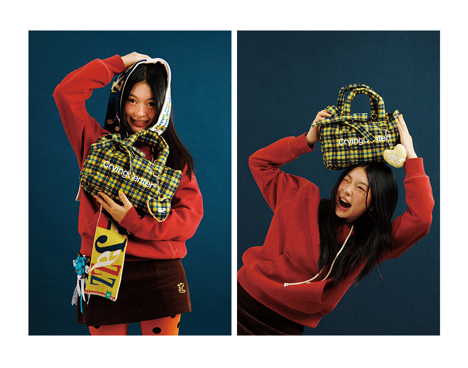 CryingCenter多色复古格纹托特包(含云朵挂件)斜挎单肩包大小号