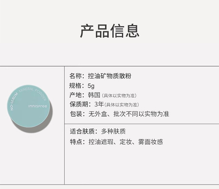 Innisfree 悦诗风吟 矿物质控油散粉 5g【2026.10.16】