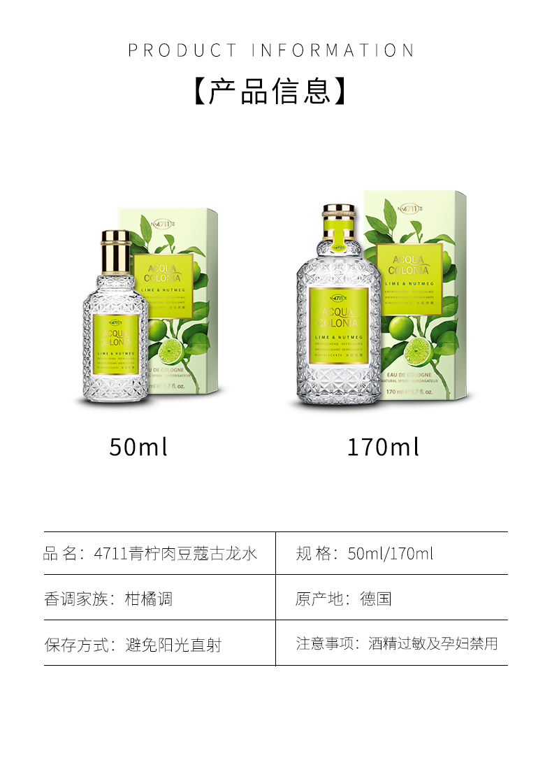 4711爽露沐后苏醒青柠肉豆蔻香型古龙水【效期2025年3~8月】