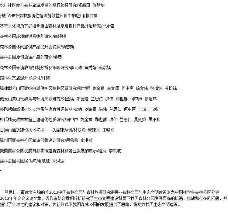 2013中国森林公园与森林旅游研究进展--森林公园与生态文明建设 9008
