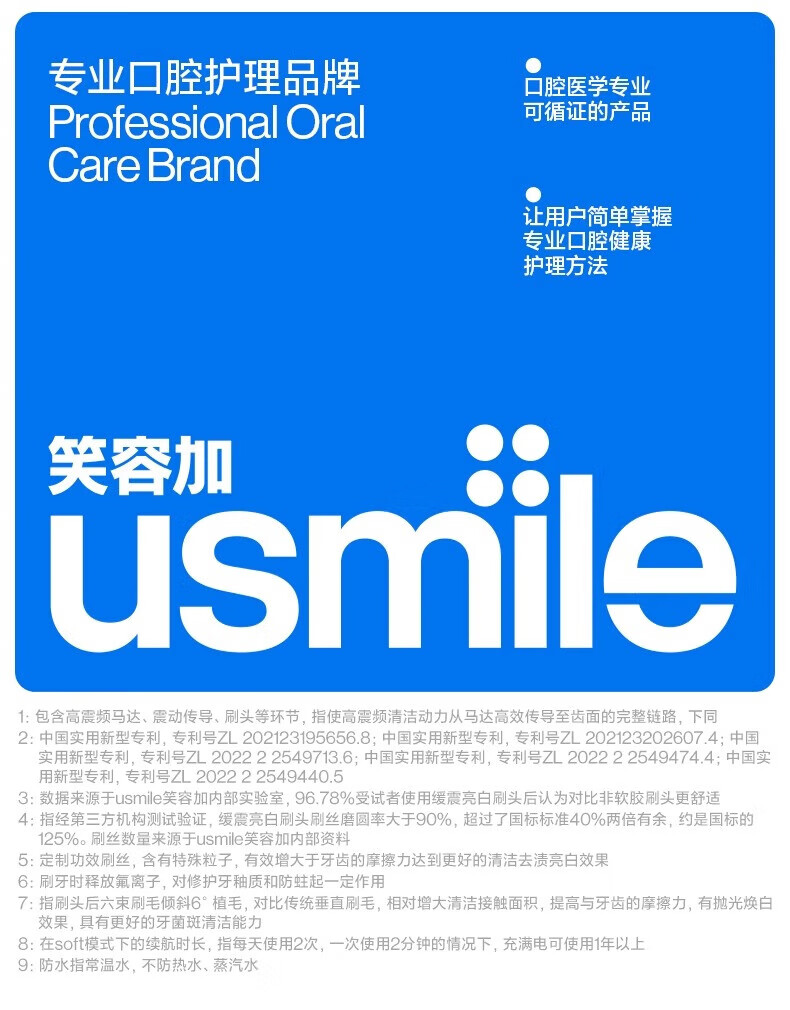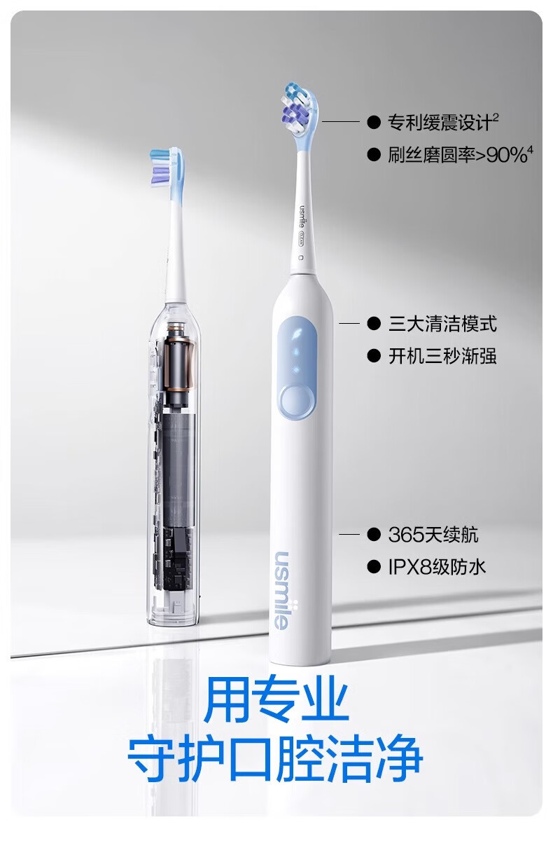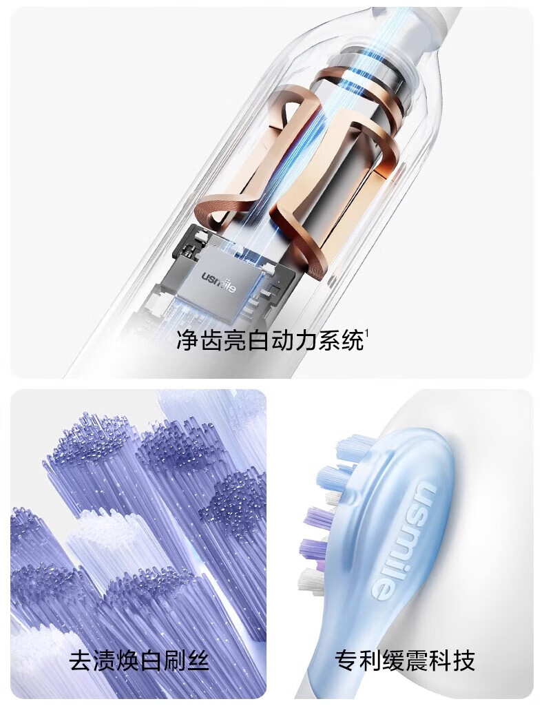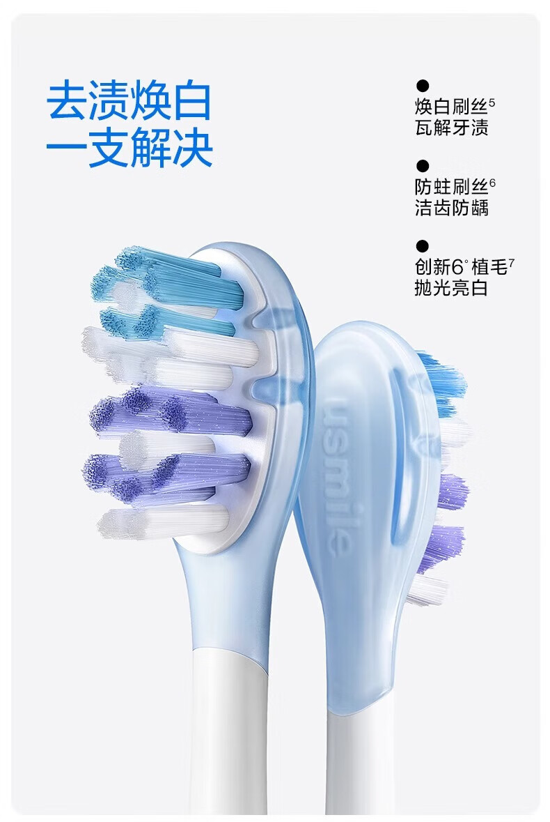 usmile笑容加电动牙刷 全新缓震清洁刷头 V1漫山白