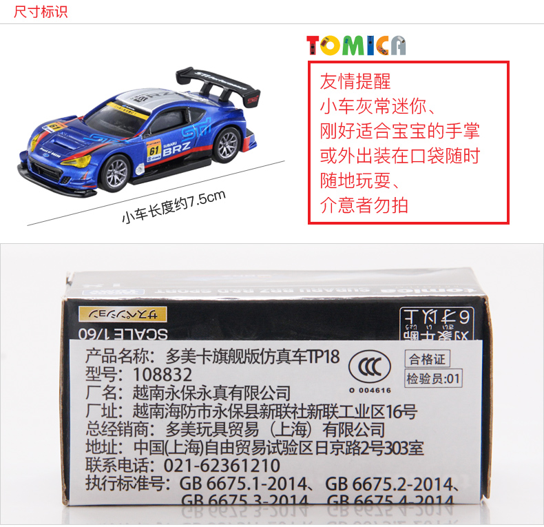 多美卡 旗舰版仿真车 TP18 斯巴鲁BRZ跑车 车长约7.5cm