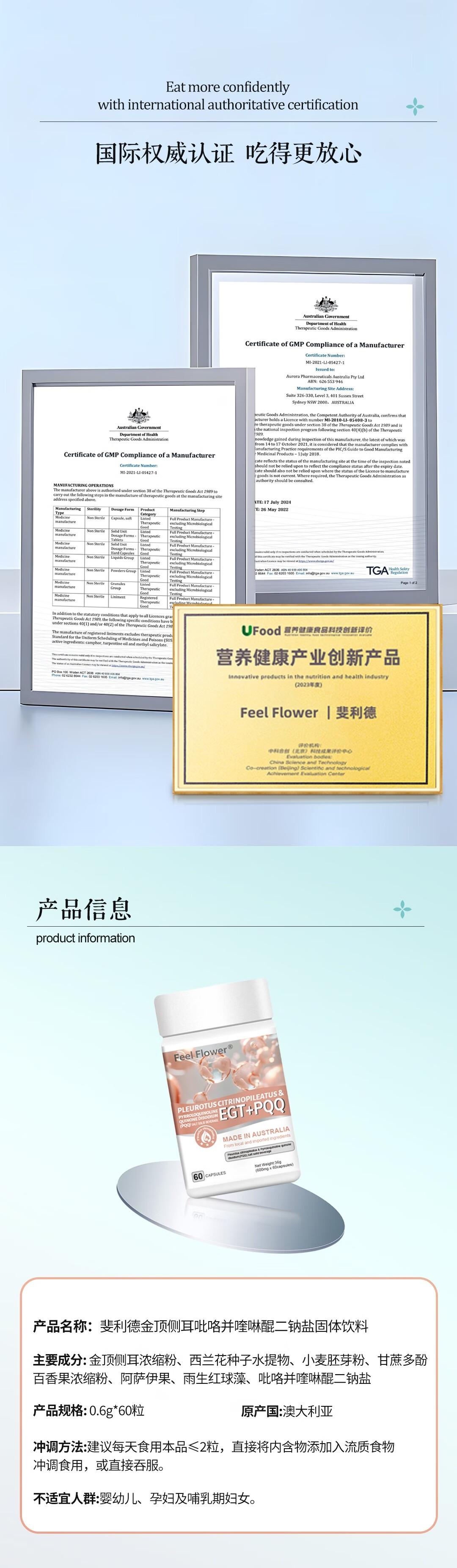 Feel Flower 斐利德 金顶侧耳吡咯并喹啉醌二钠盐固体饮料 600mg*60片