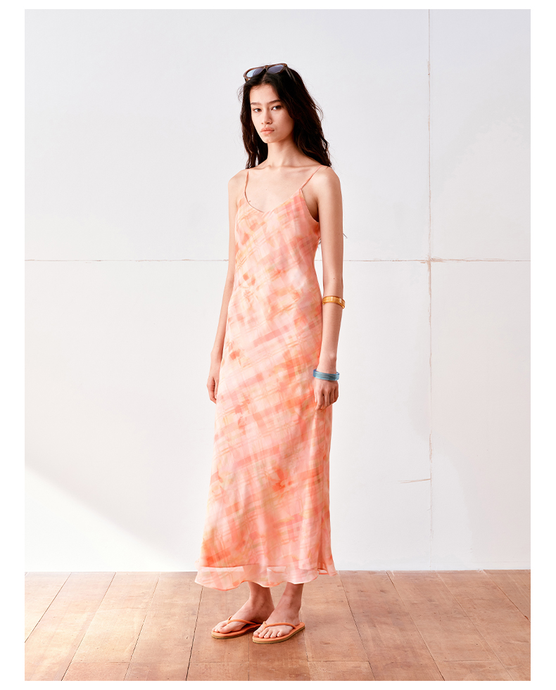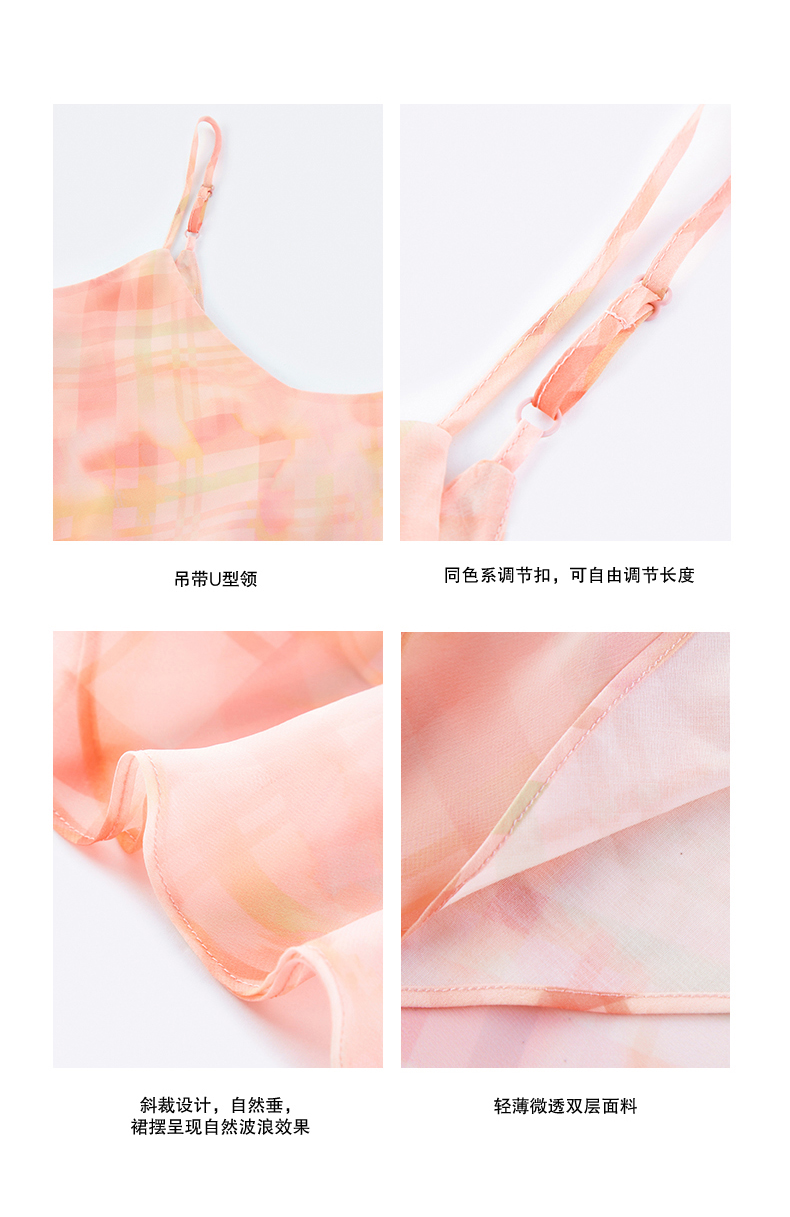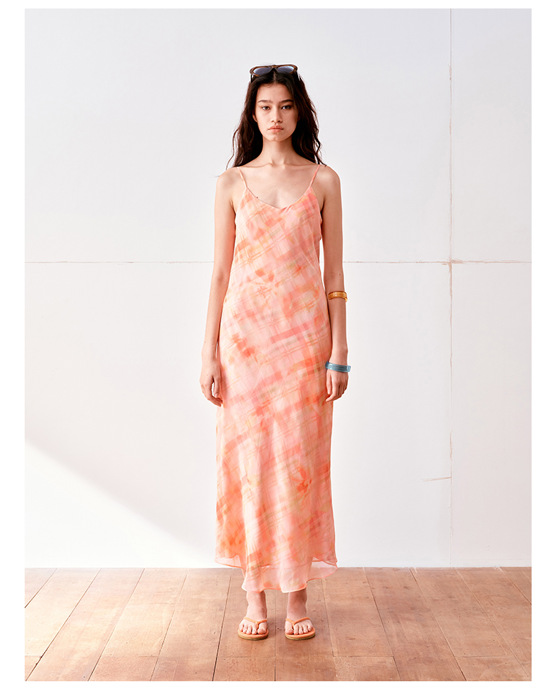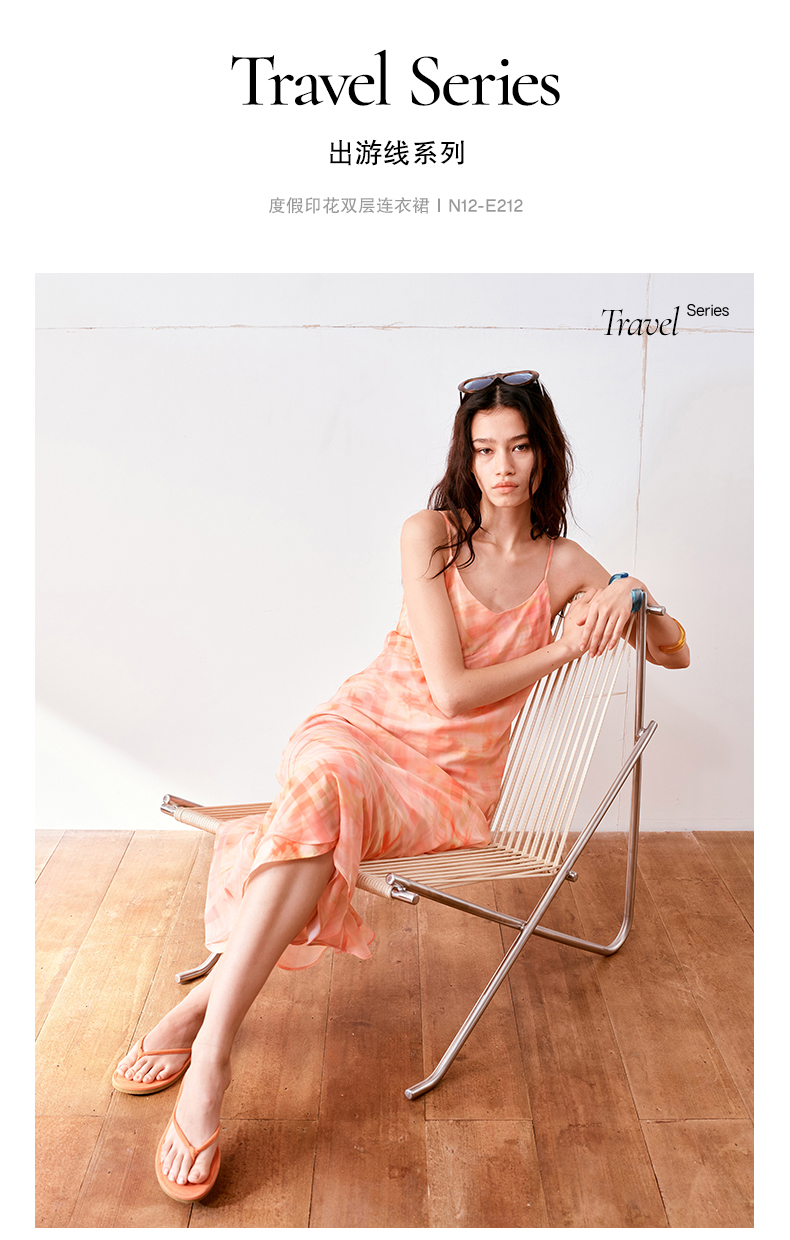 NUTH 度假印花双层吊带连衣裙轻薄微透连衣裙长裙