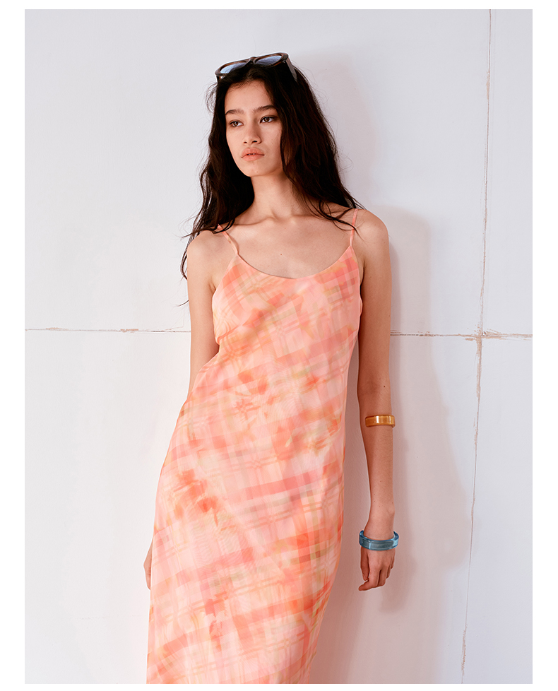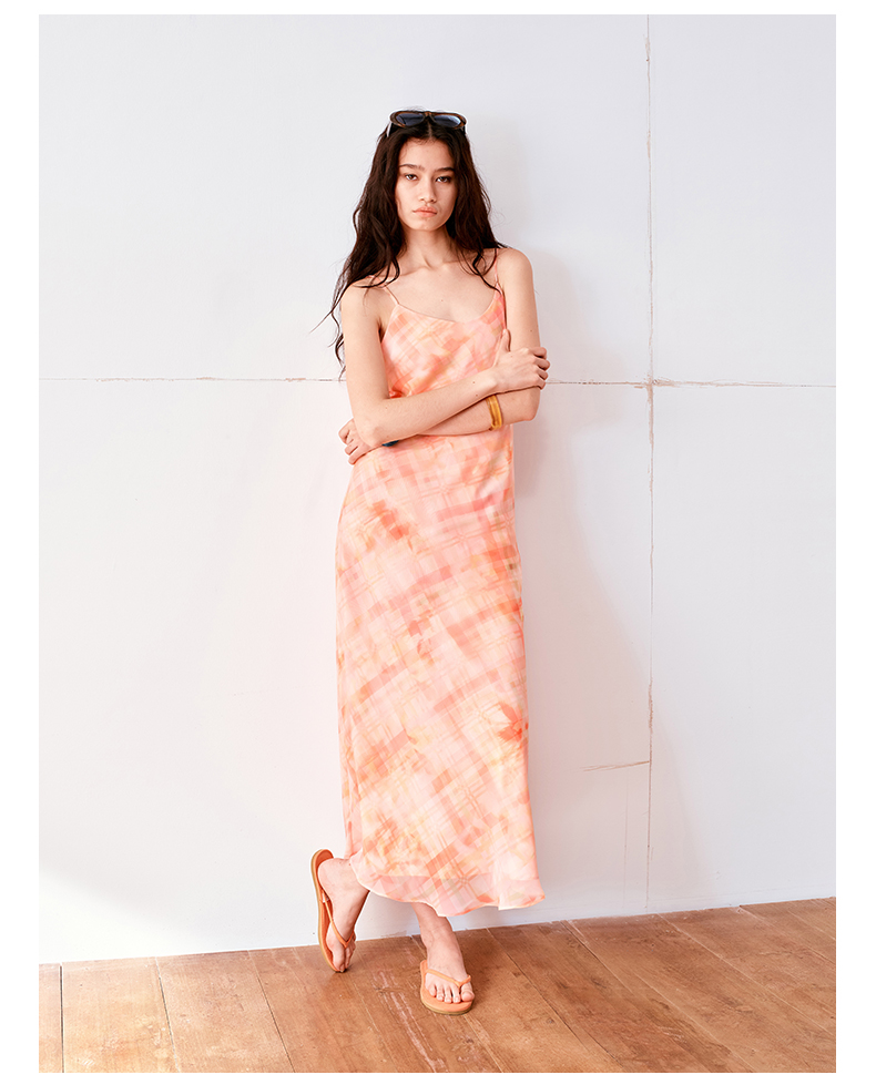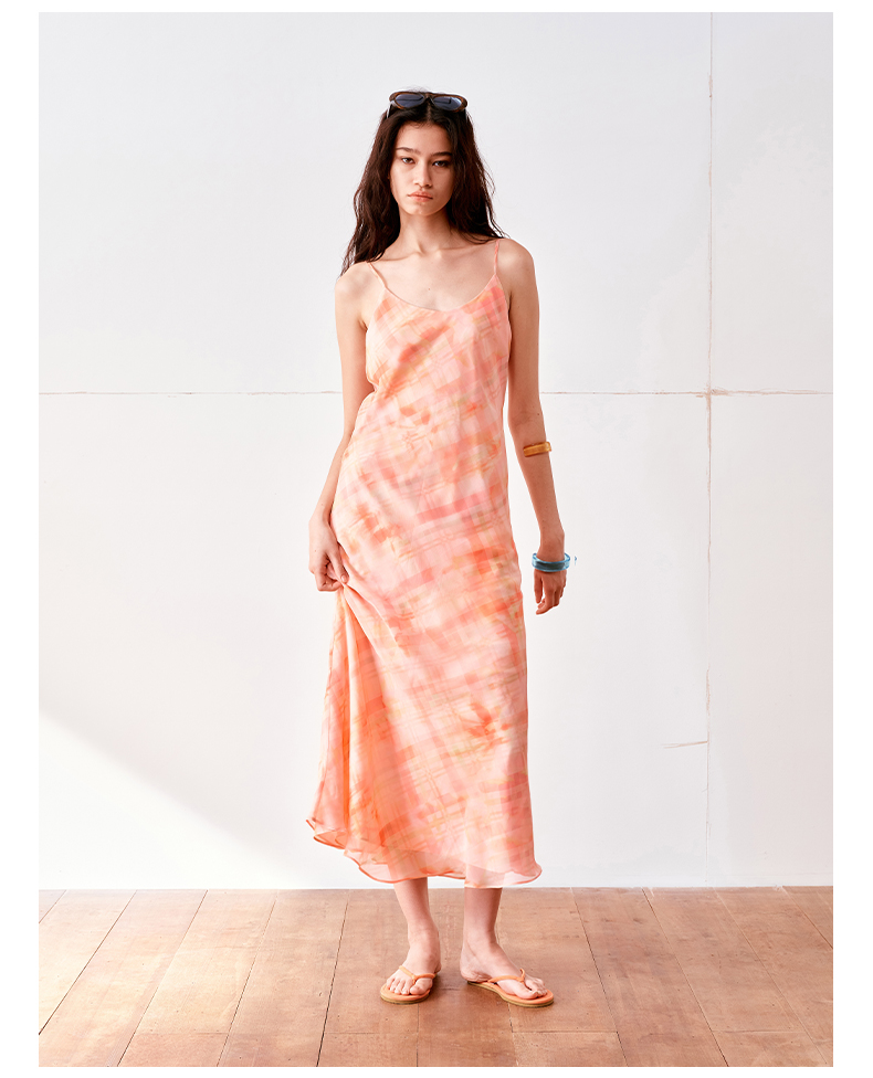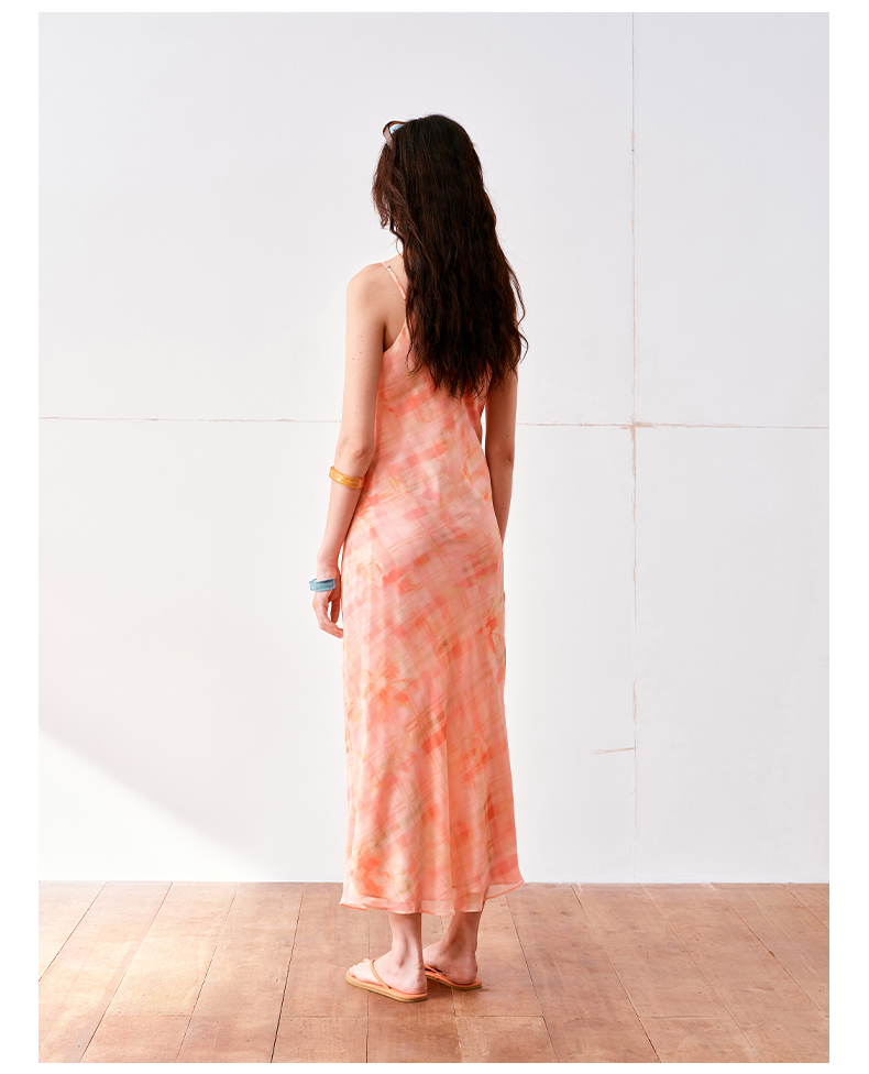 NUTH 度假印花双层吊带连衣裙轻薄微透连衣裙长裙