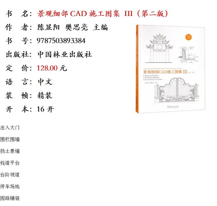 景观细部CAD施工图集 III 第二版 9338 配CAD源文件 出入大门围栏围墙挡土景墙栈道平台台阶坡道停车场地园路铺装 中国林业出版社
