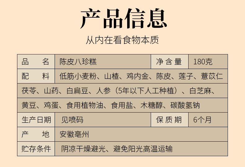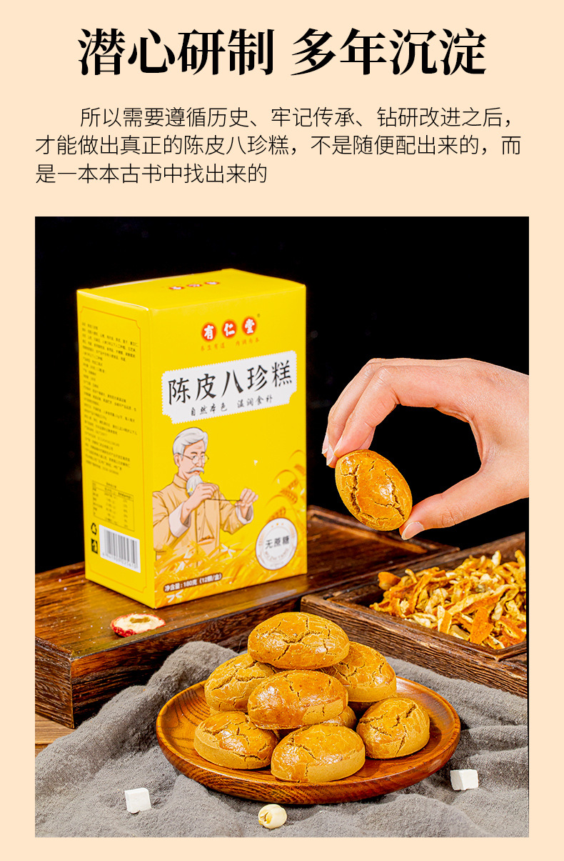 买2送1【古方八珍糕】有仁堂陈皮八珍糕 八珍原材 古法匠心制作 无蔗糖 温养呵护pi胃 12颗/180g一盒