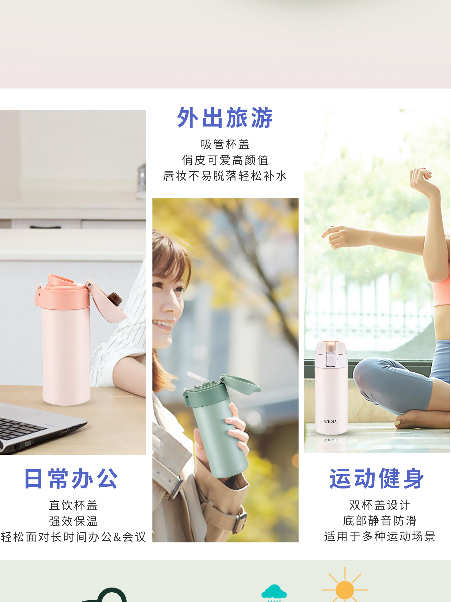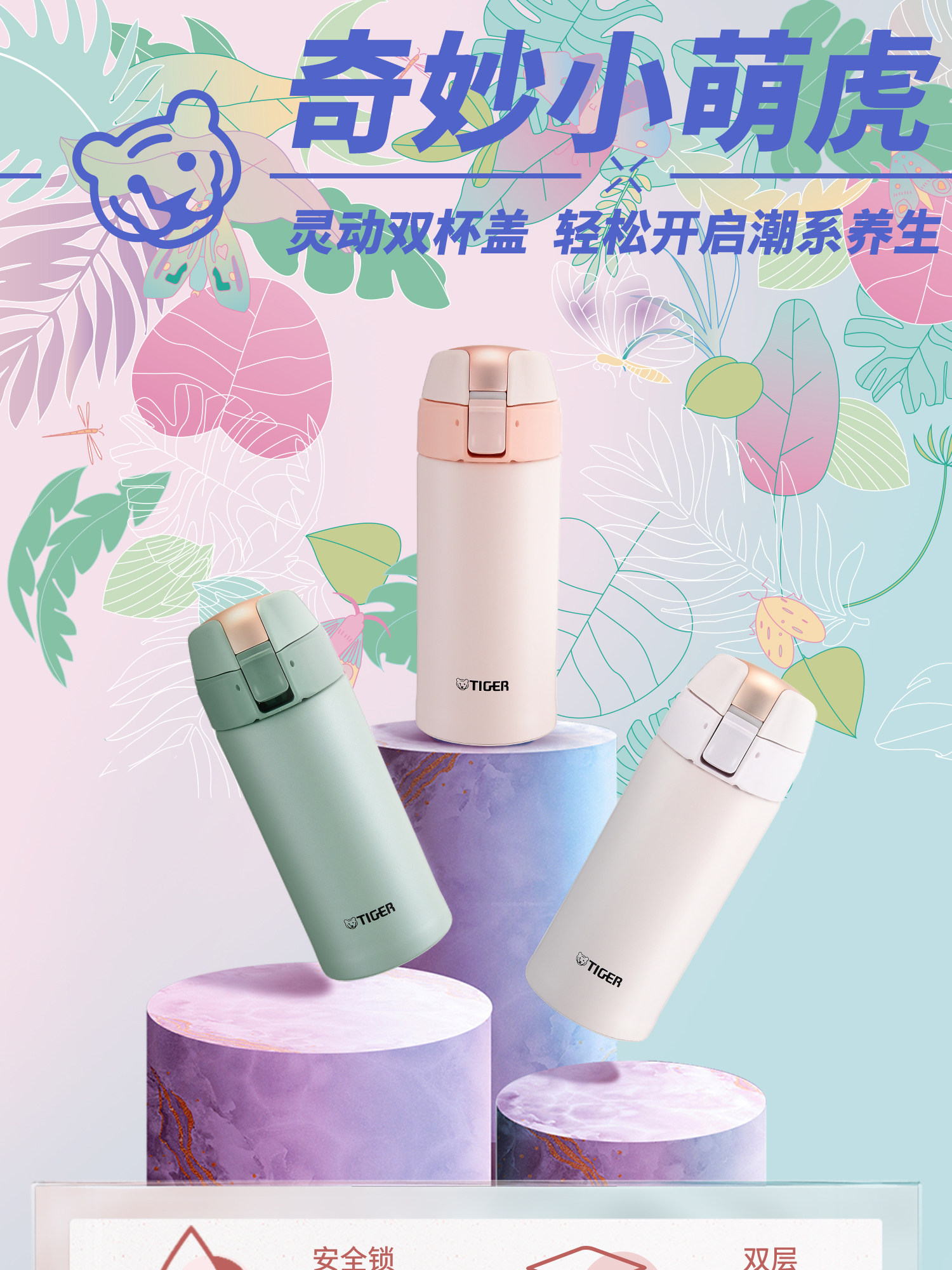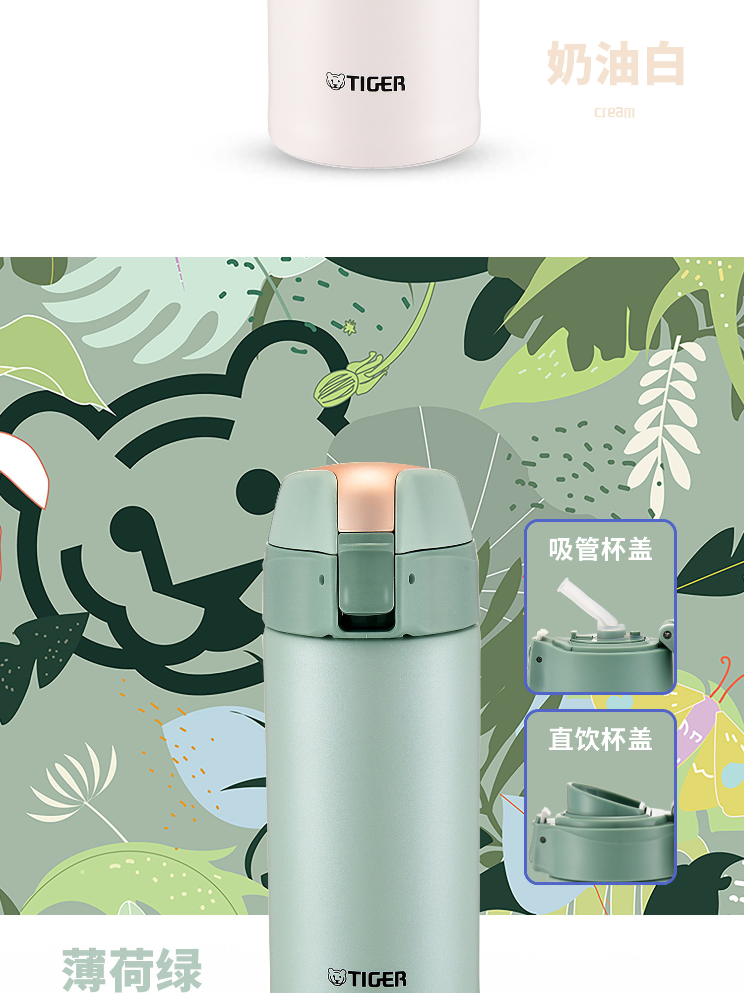 TIGER 虎牌 两用型 不锈钢真空杯 MMT-B35C GM 薄荷绿 350ml