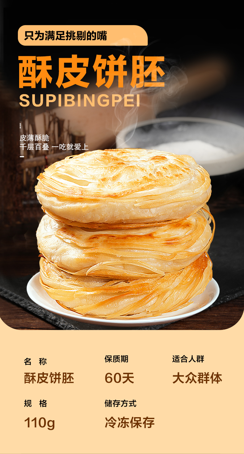 老潼关肉夹馍饼胚早餐速食半成品冷冻家庭装千层饼20片*100g