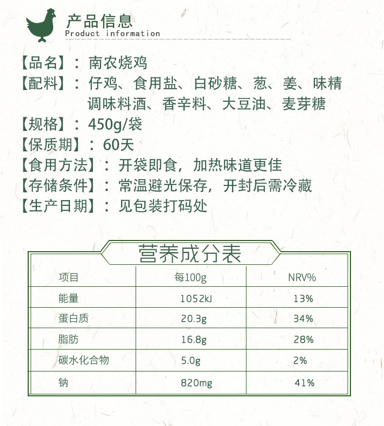 南农 烧鸡 南京特产 风味酱卤熟食 拆开即食真空包装 烧鸡500g *2袋 老包装