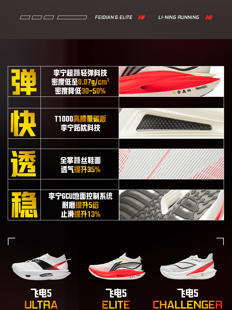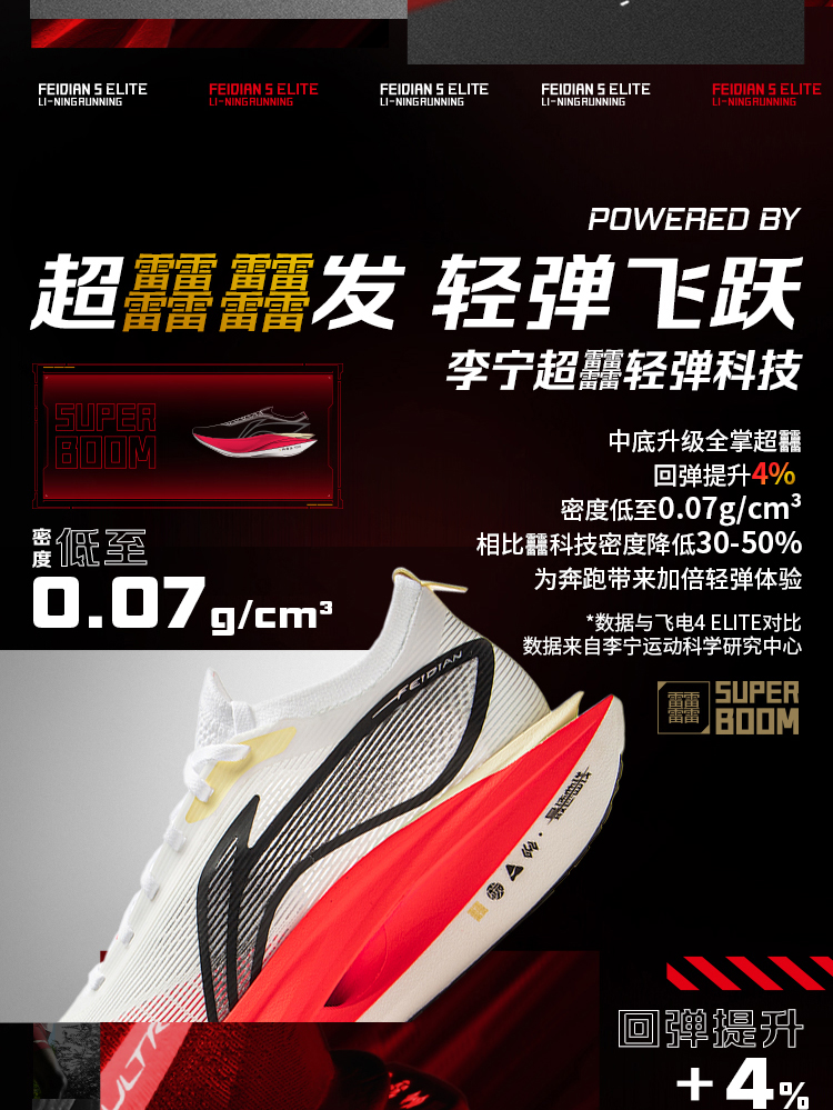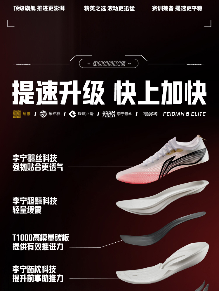 李宁 飞电5 ELITE 男女款 beng轻弹科技高回弹竞速比赛训练运动跑步鞋