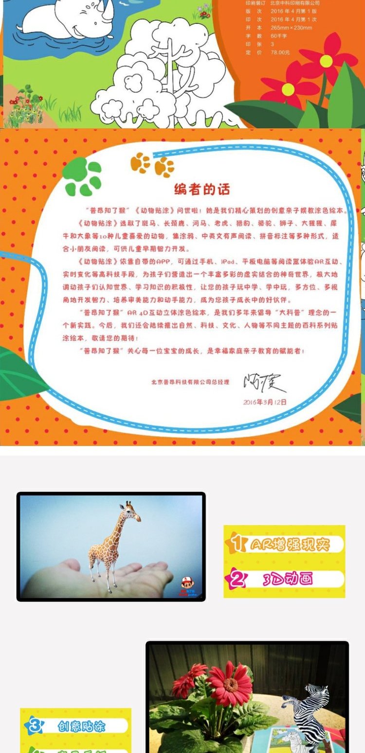 动物贴涂 涂涂乐(涂一涂,扫一扫,涂鸦一秒变4d立体动画+另附10张贴纸贴) 8468
