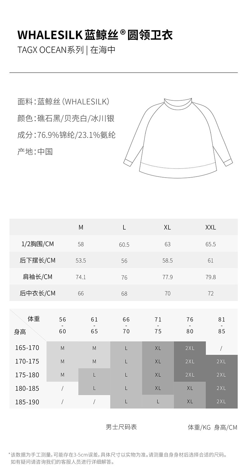 TAGX探观高领卫衣男连帽蓝鲸丝高级轻盈运动宽松休闲抑菌春秋纯色