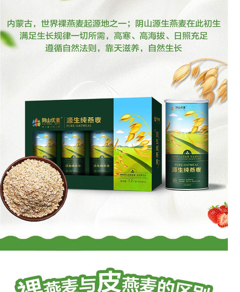 【燕麦礼盒|阴山优麦】1200g/盒 高纤黑麦片礼盒 无添加蔗糖 健身营养 早餐冲饮