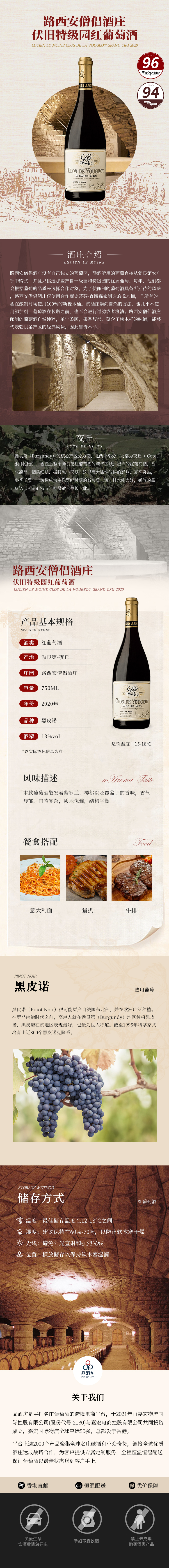 2020 Lucien Le Moine Clos de la Vougeot Grand Cru 路西安僧侣酒庄伏旧特级园红葡萄酒