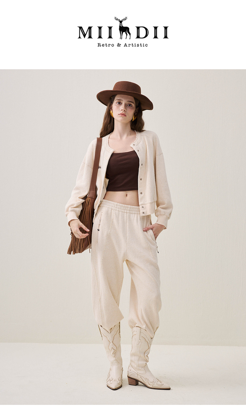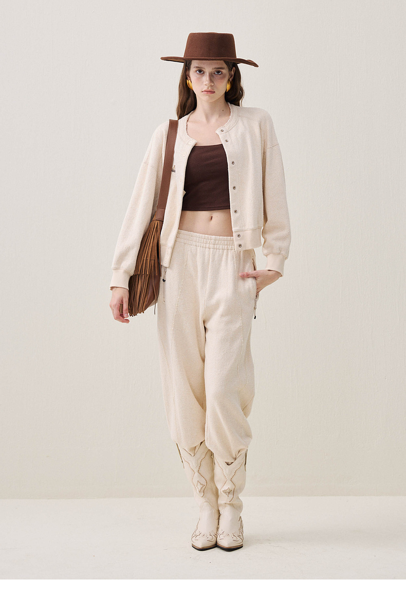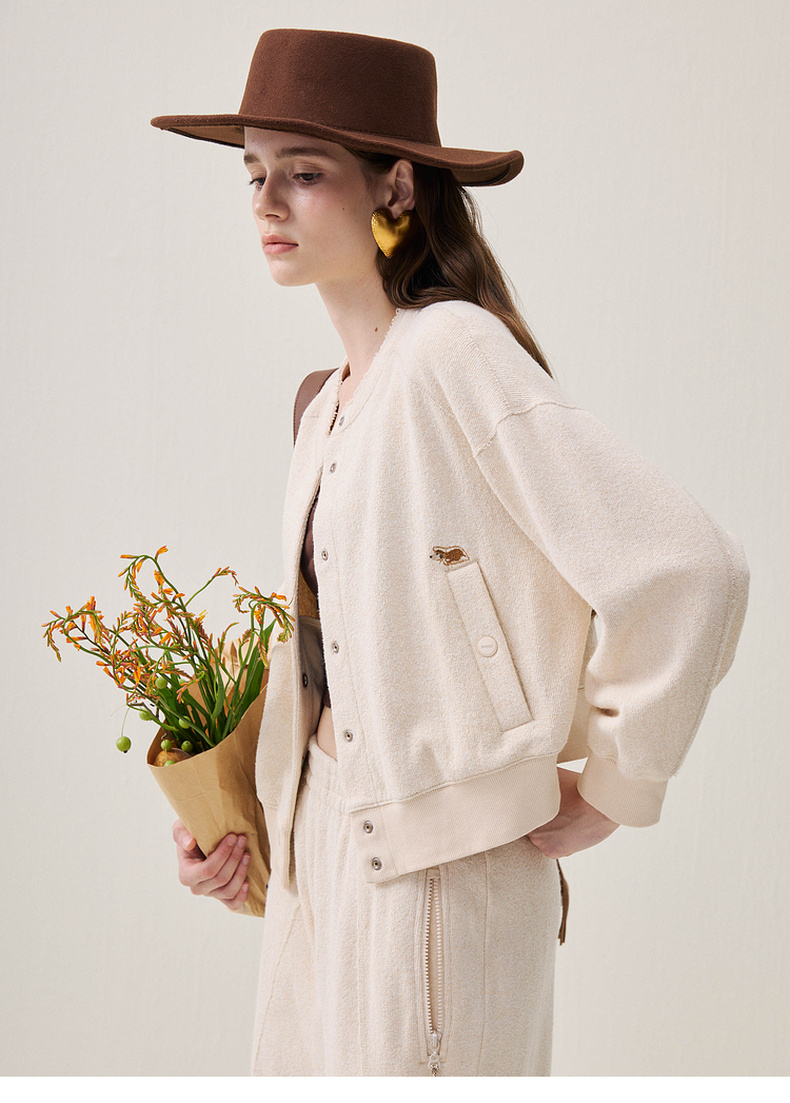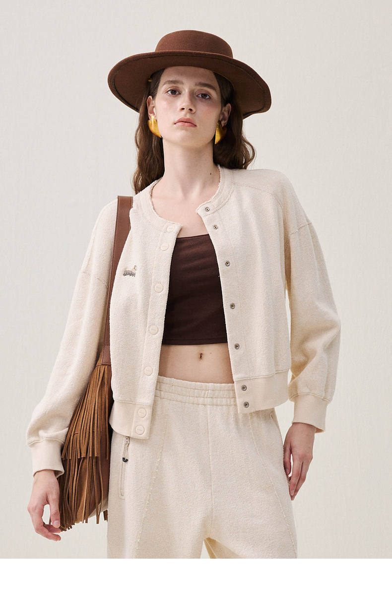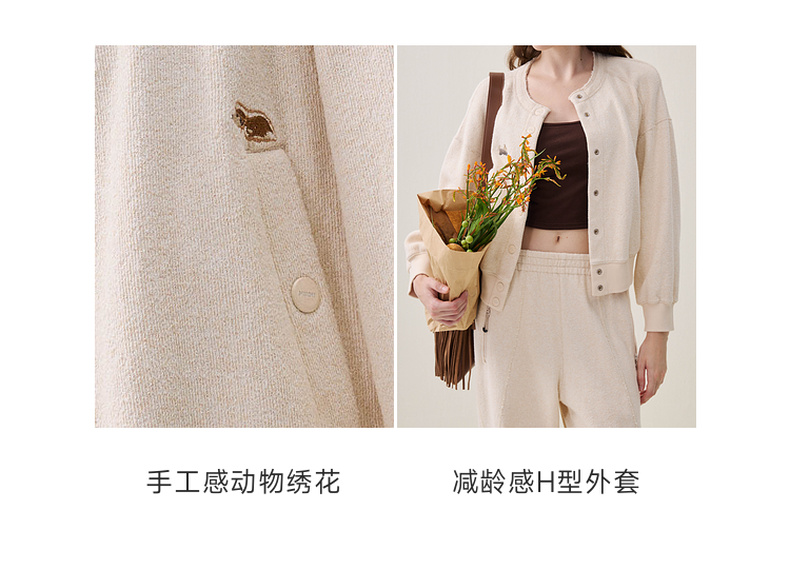谜底圆领外套长袖2025年冬季新品柔软亲肤绣花学院风女254MW1665