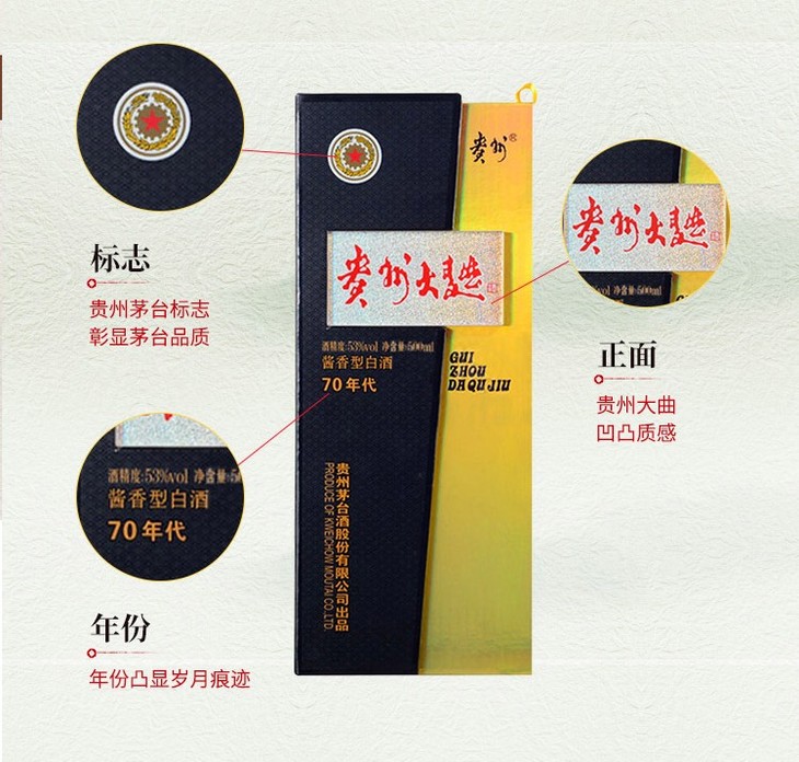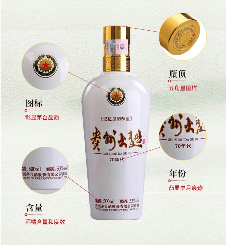 【标品破价】 茅台股份 贵州大曲70年代 酱香型 53度 500ml x6 整箱