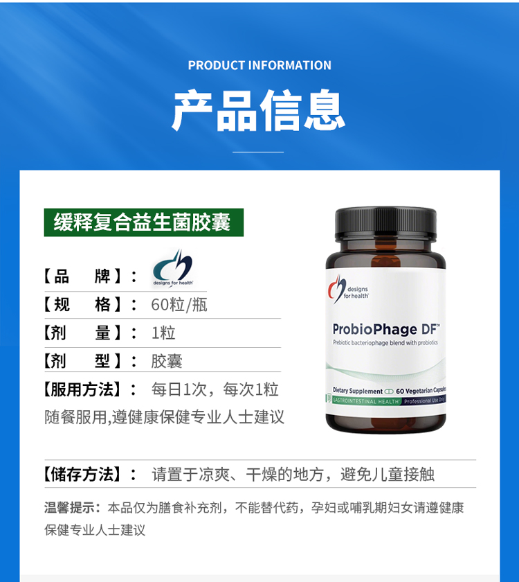 【效期至27年3月】缓释复合益生菌胶囊 Designs for health Probiophage DF™ caps* 60粒/瓶