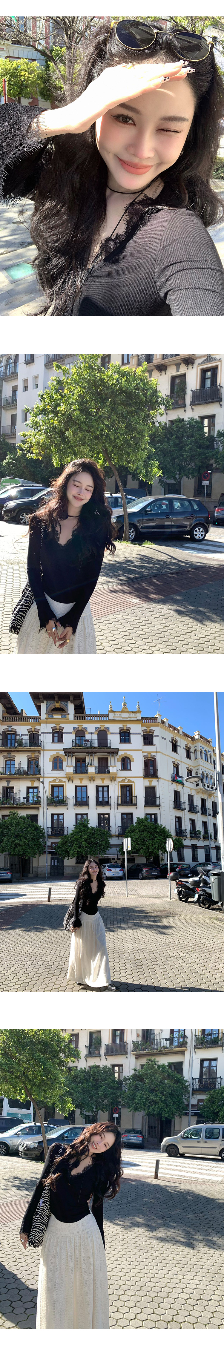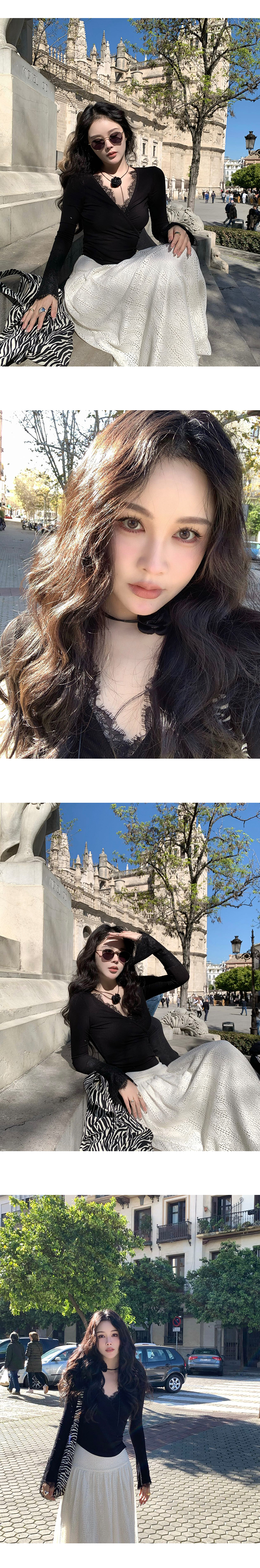 Read Nameless /睫毛蕾丝边黑色交叉绑带打底衫+塞维利亚白色蕾丝裙