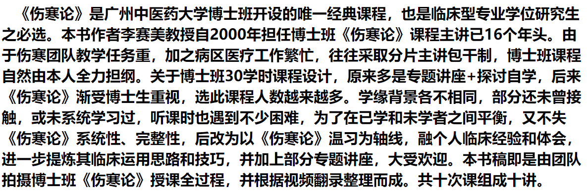 书名:李赛美《伤寒论》临床十讲