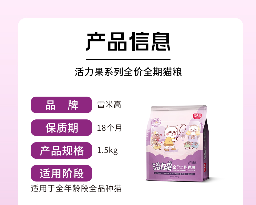【雷米高】活力果全价全期猫粮猫咪冻干肉蛋果蔬营养五拼成猫主食