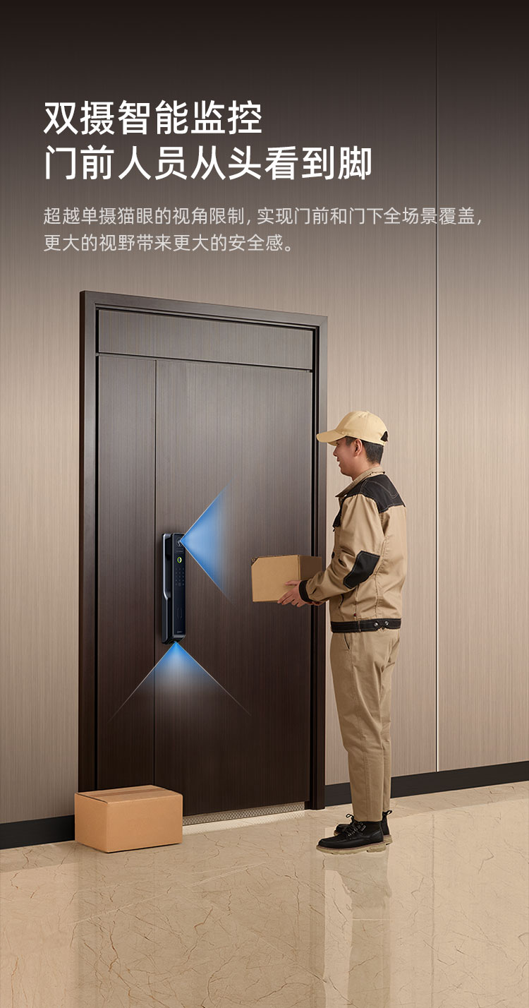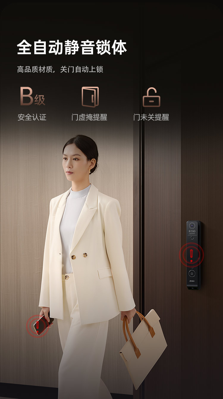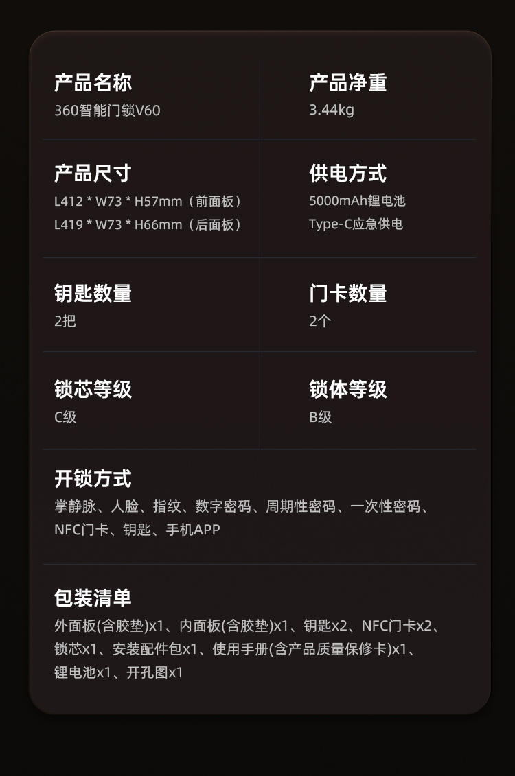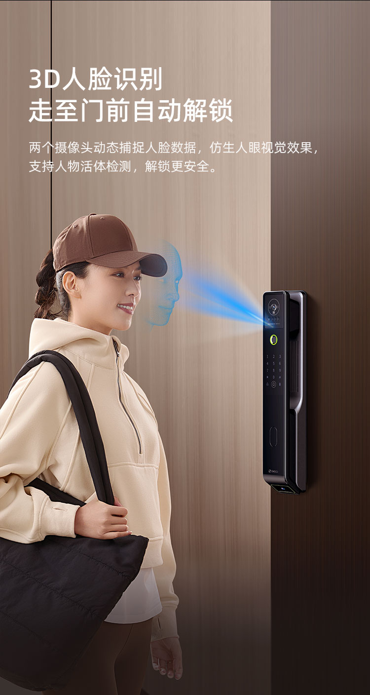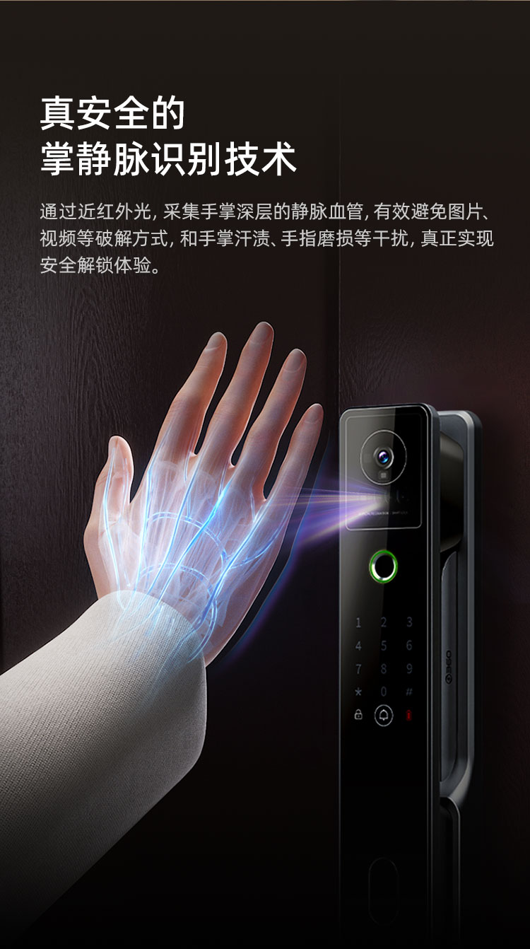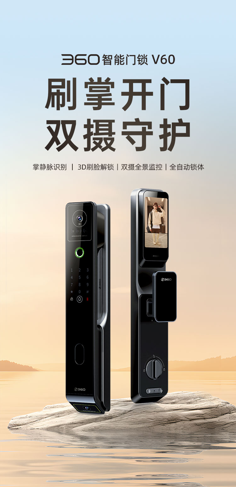 【超值】360智能门锁V30Pro+ 掌静脉解锁 3D人脸解锁 双摄猫眼 微信对讲 4英寸全彩大屏 24小时实时感应