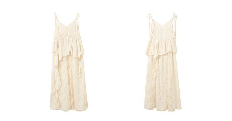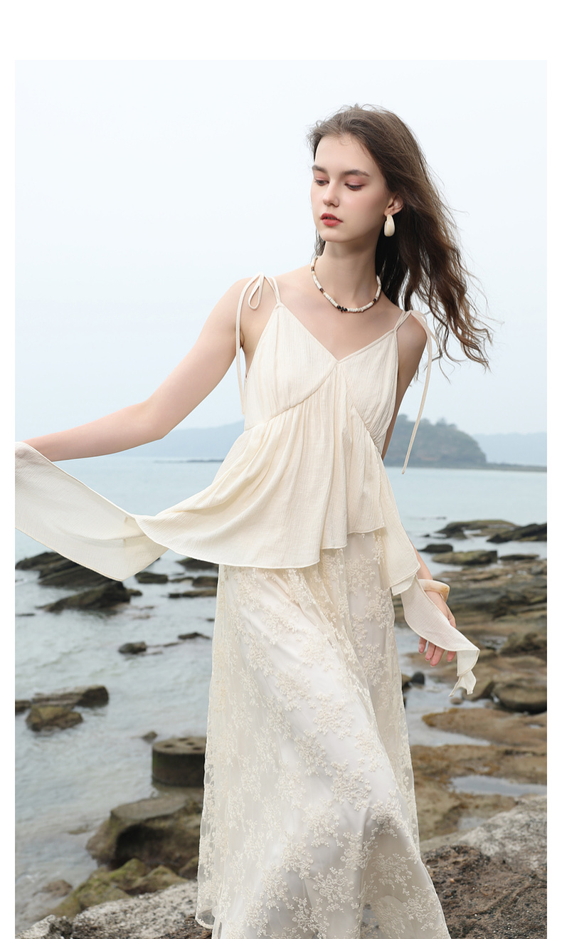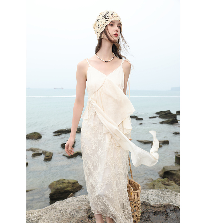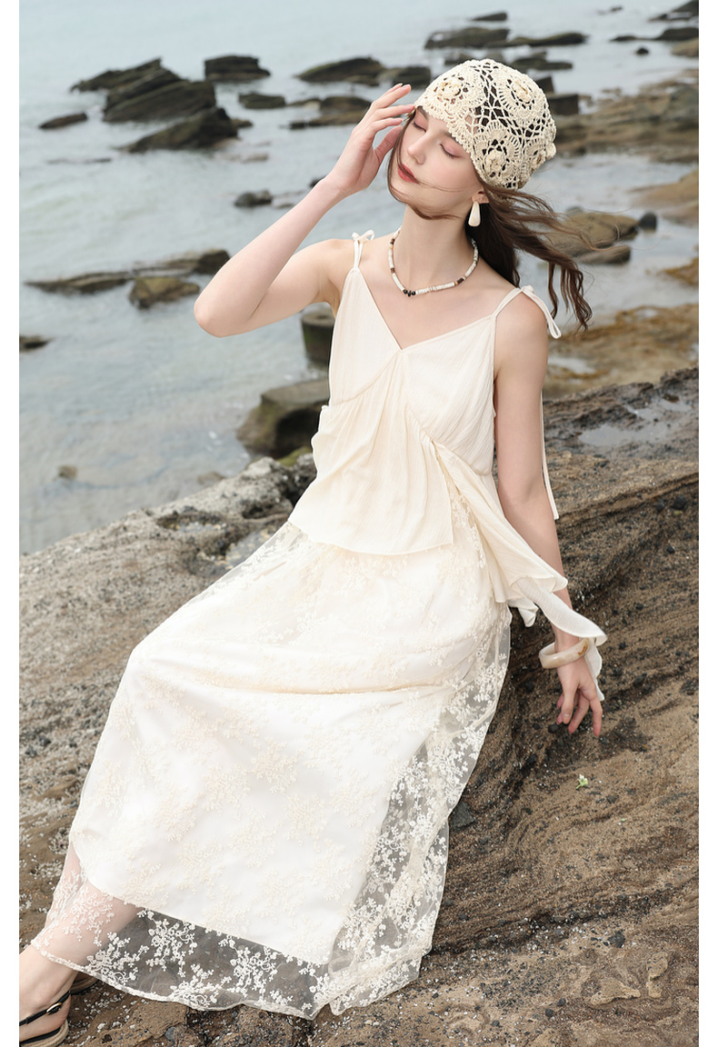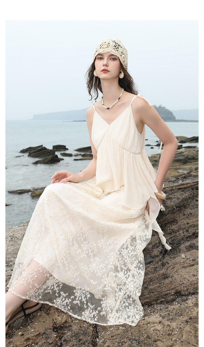 三彩2025夏季新款假两件吊带裙网纱拼接A字长裙度假风M