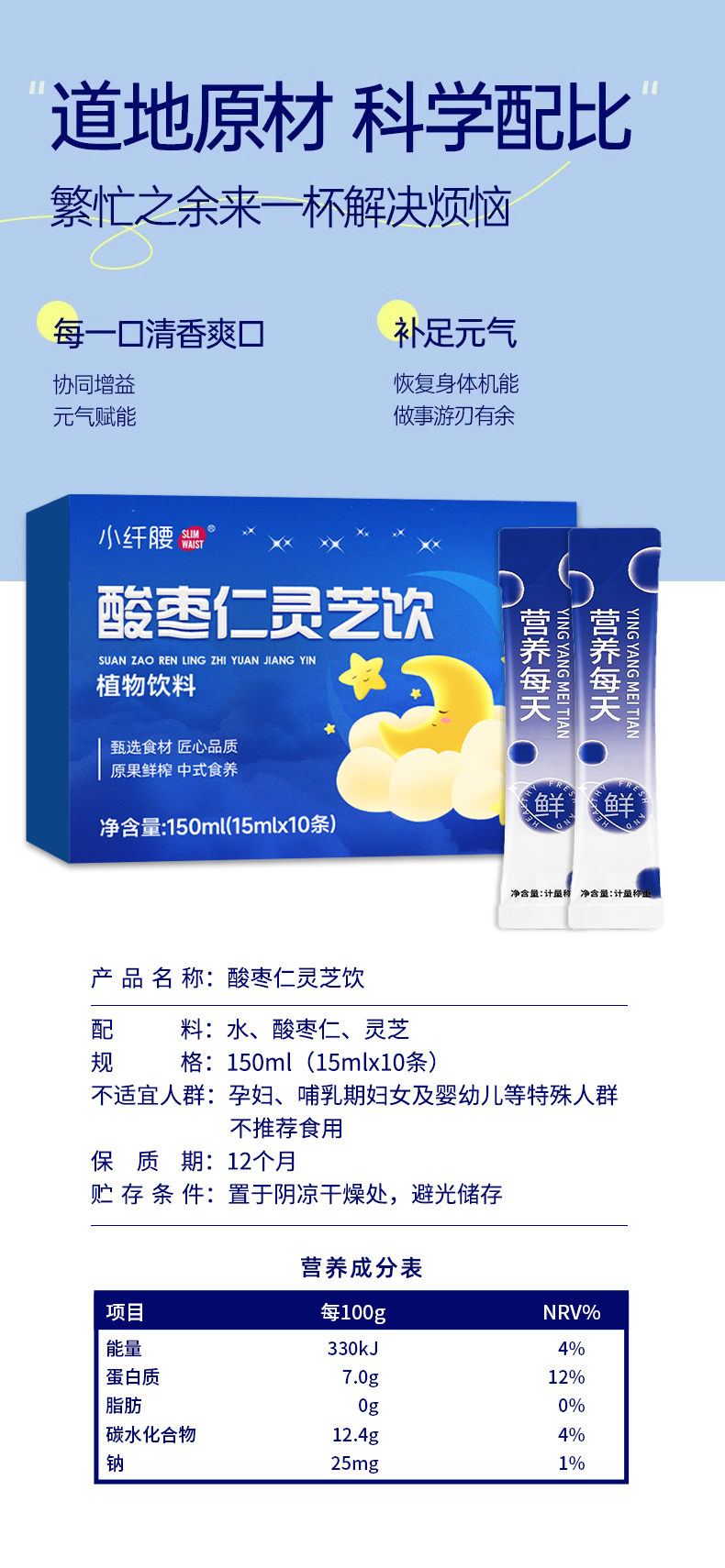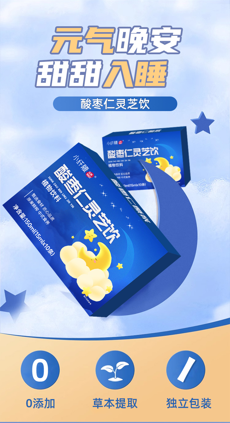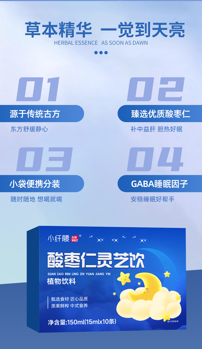 【晚安植物饮】小纤腰 酸枣仁灵芝饮 15ml*10袋/盒 道地原材科学配比
