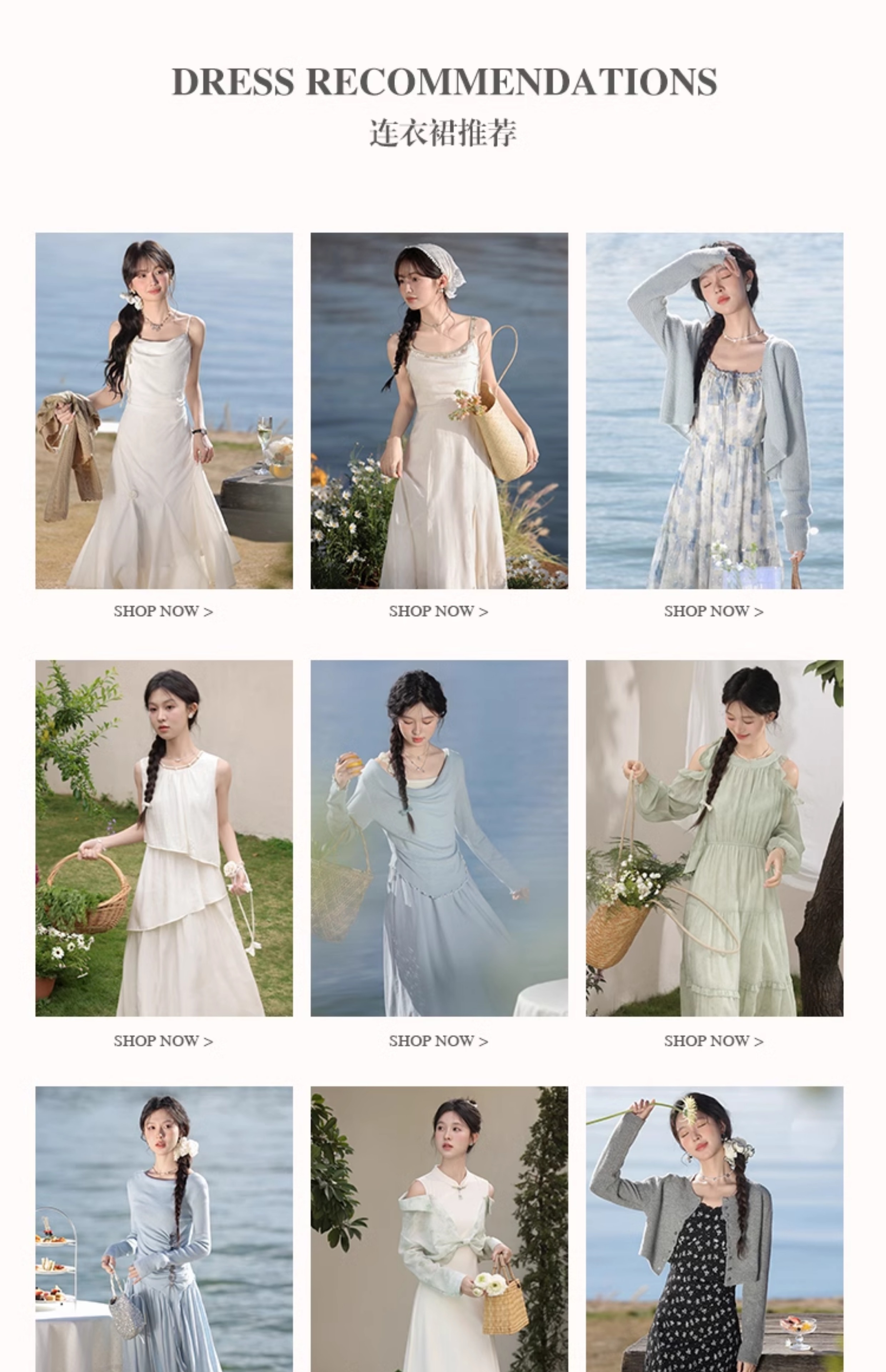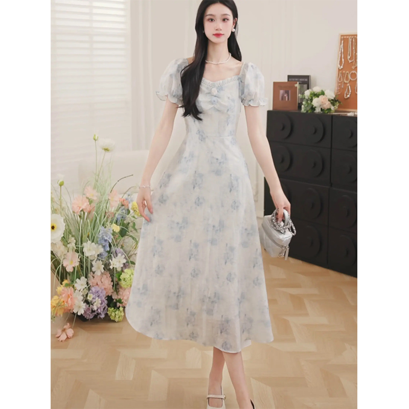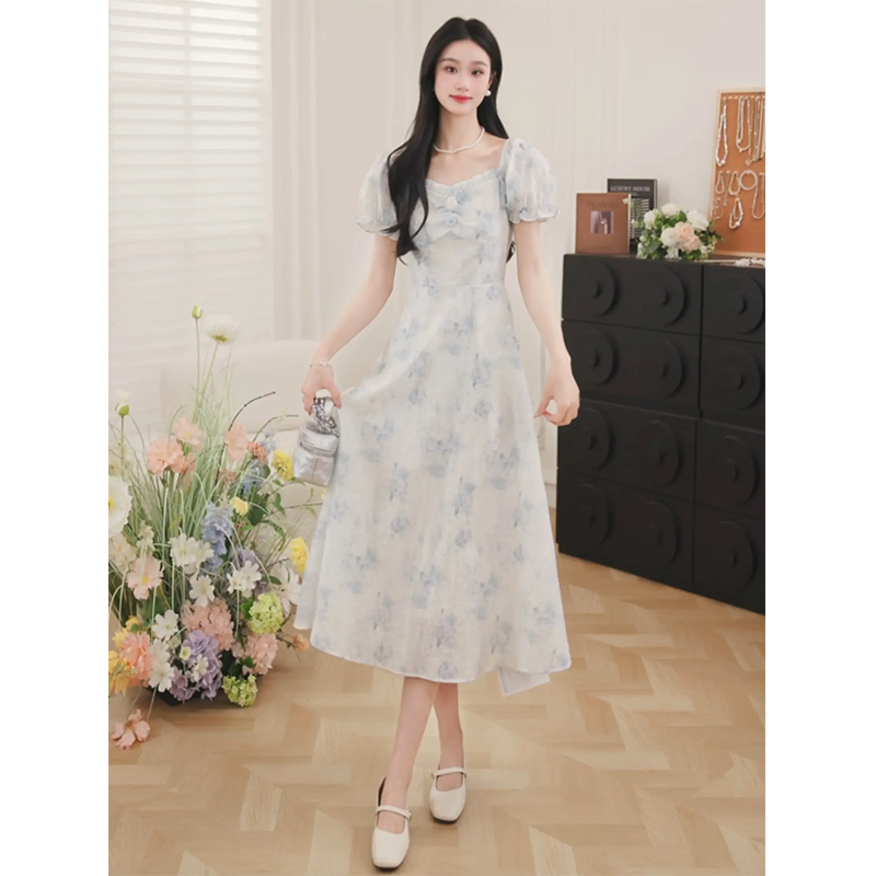 鹿向南「夏日繁花」清新气质连衣裙女夏季新款设计感高腰A字长裙QJD00350