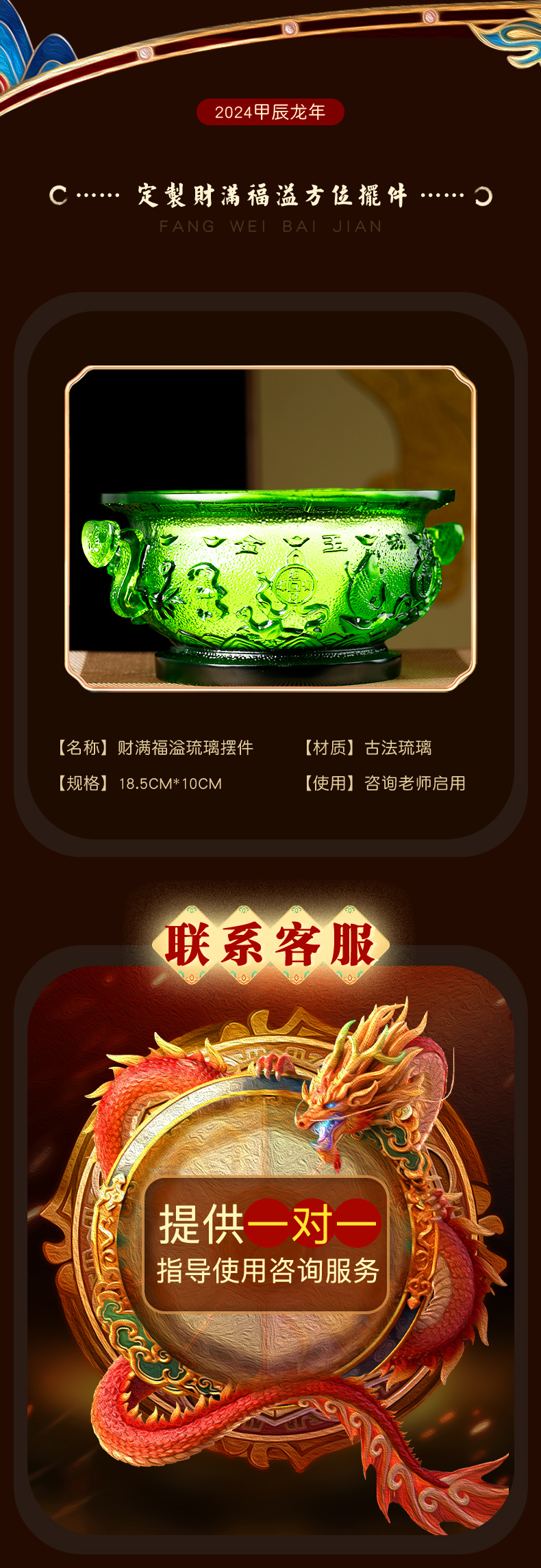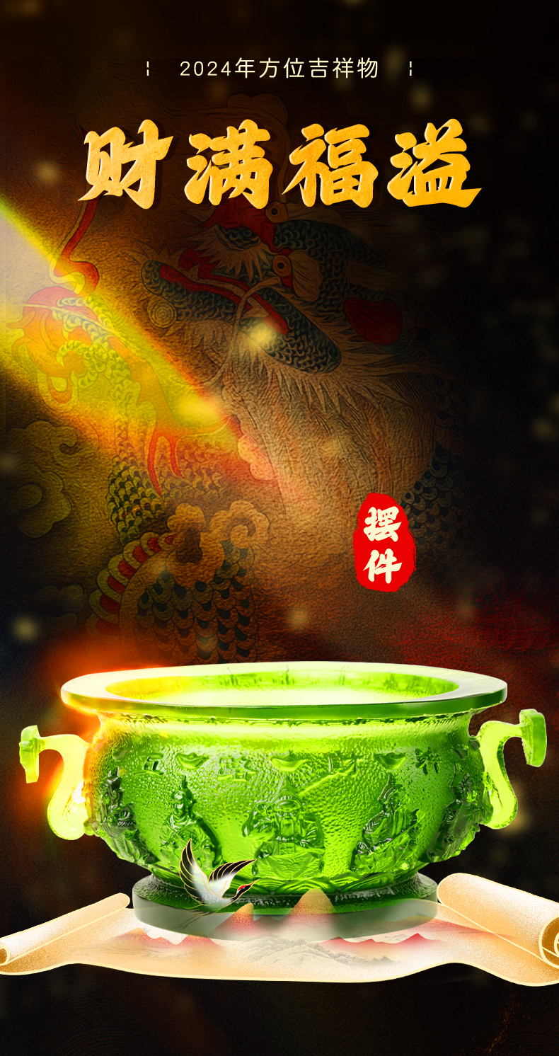 慈元阁2024年方为吉祥物摆件宝满福溢琉璃聚宝盆家居客厅玄关摆设