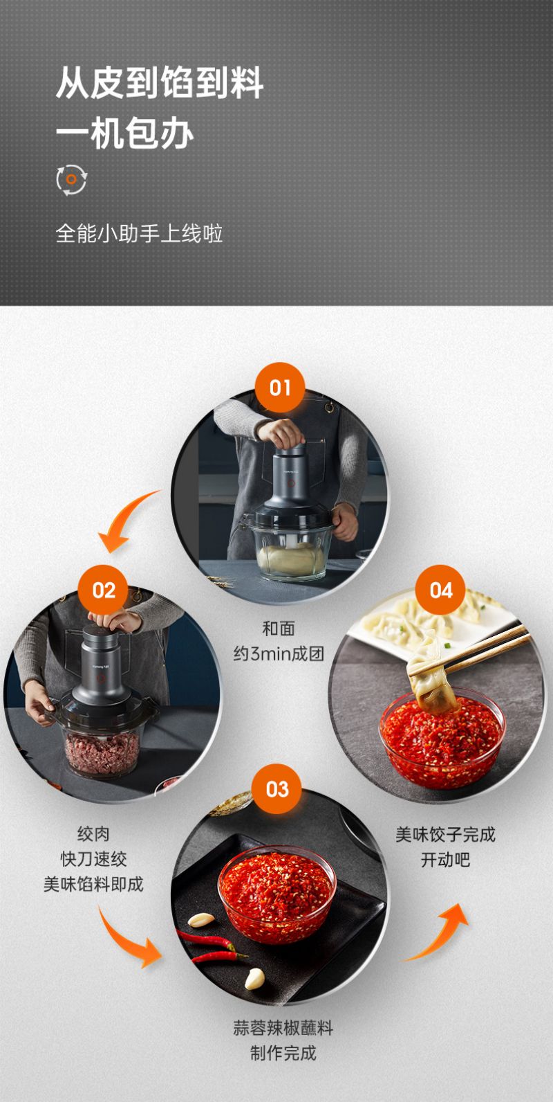 九阳和面+绞肉二合一绞肉机S22-LA991