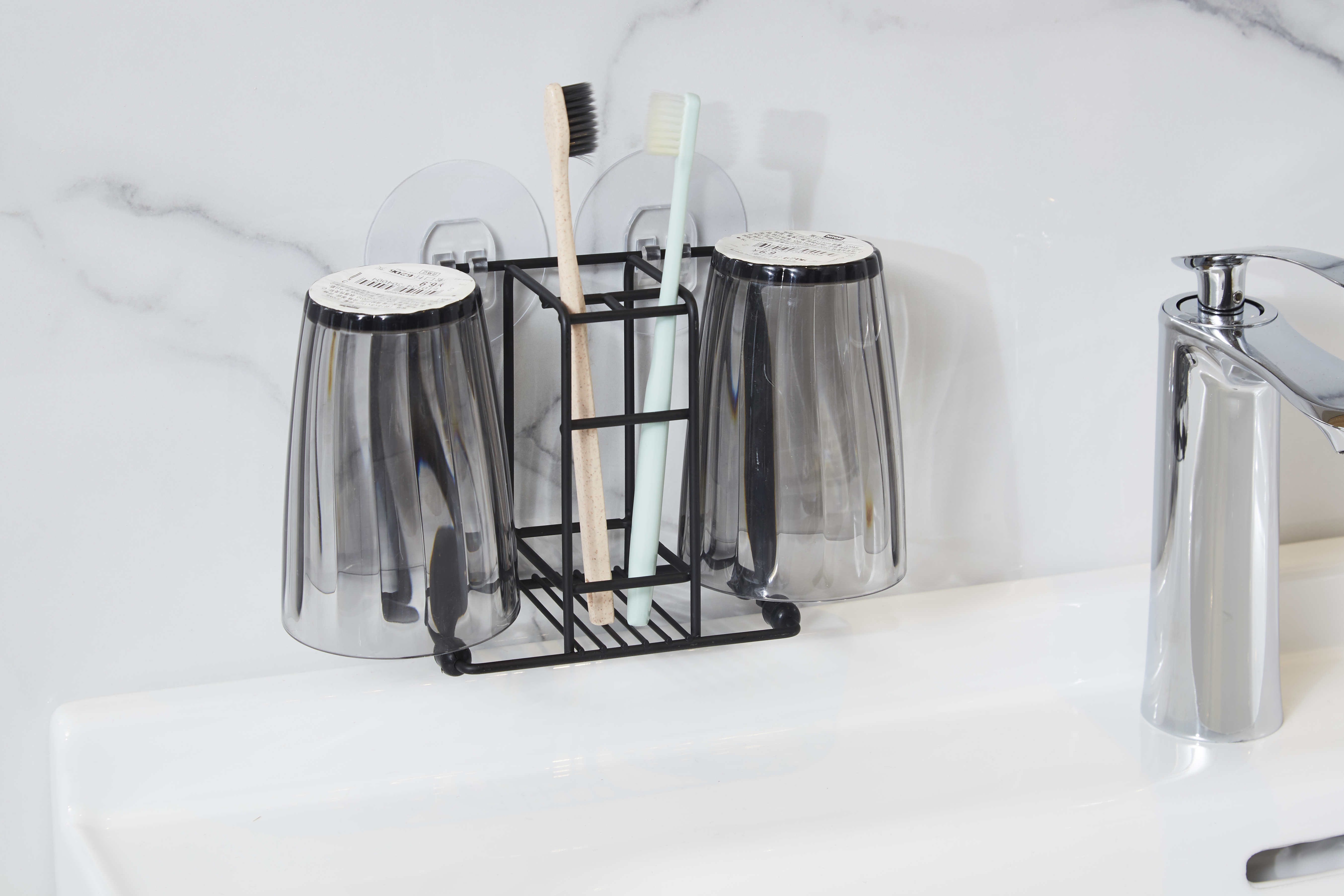 两用洗漱收纳架(附贴片) BK