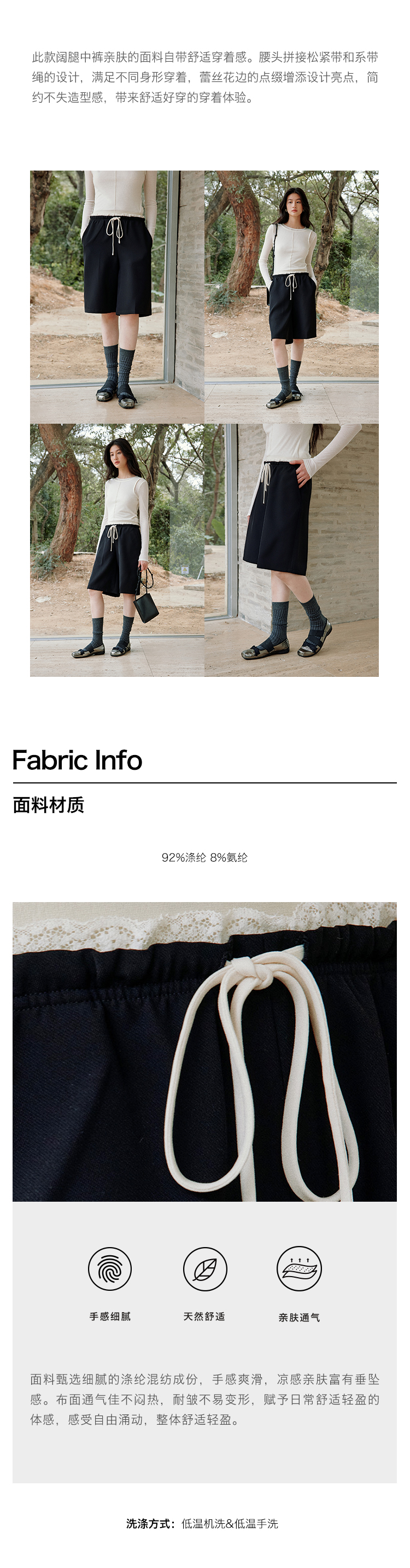 ForPoem 现货 25/SS原创设计橡筋蕾丝花边休闲阔腿百搭中裤