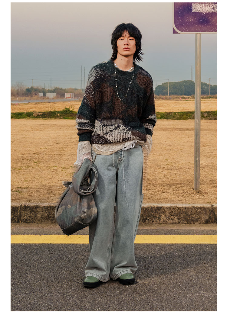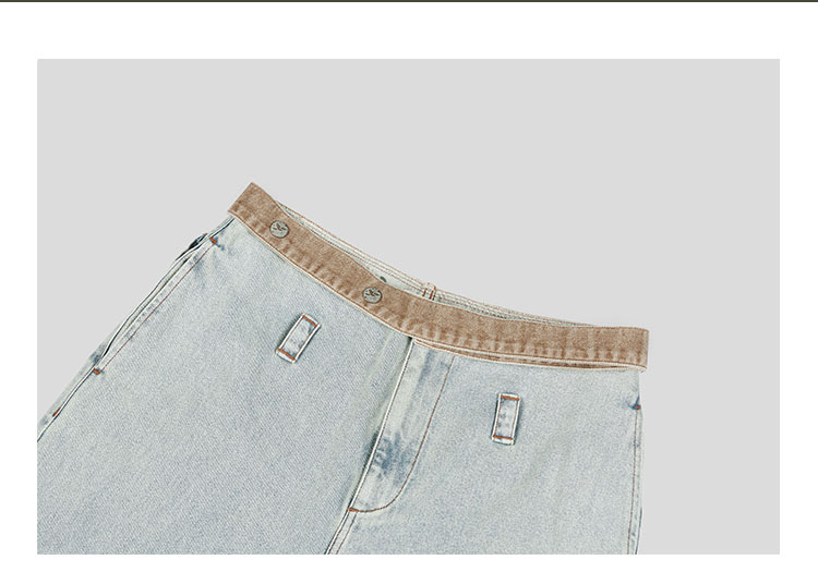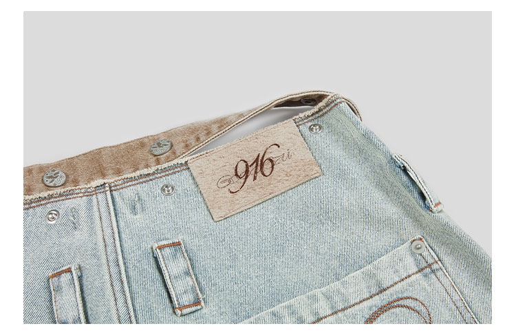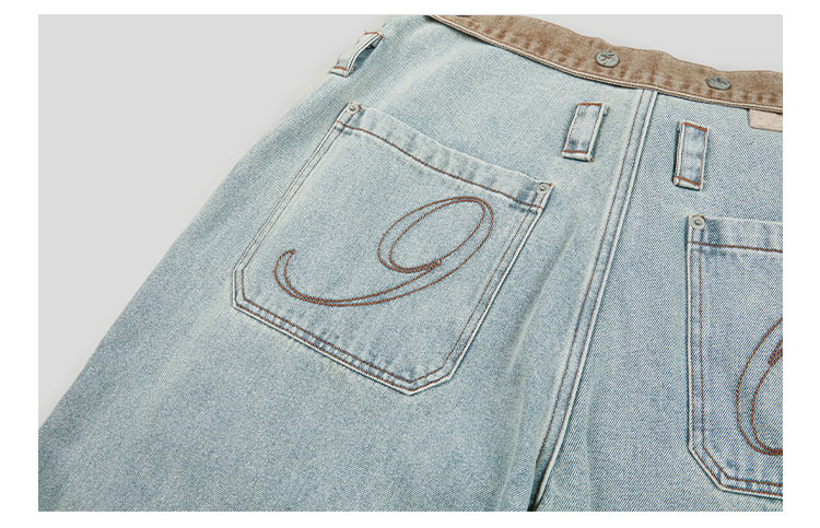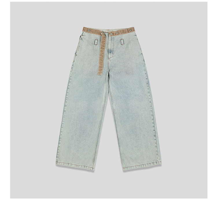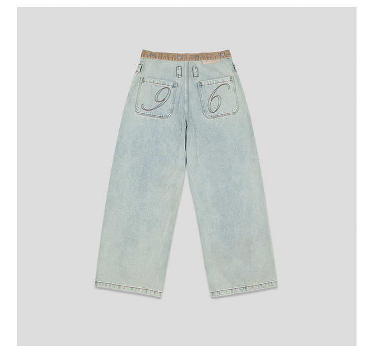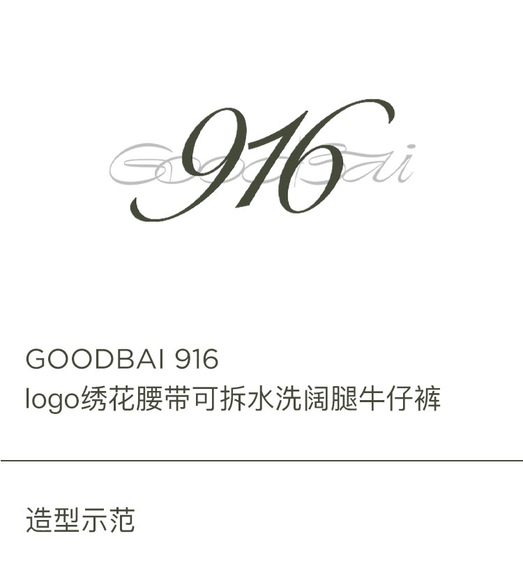 GOODBAI 916 logo绣花腰带可拆水洗阔腿牛仔裤